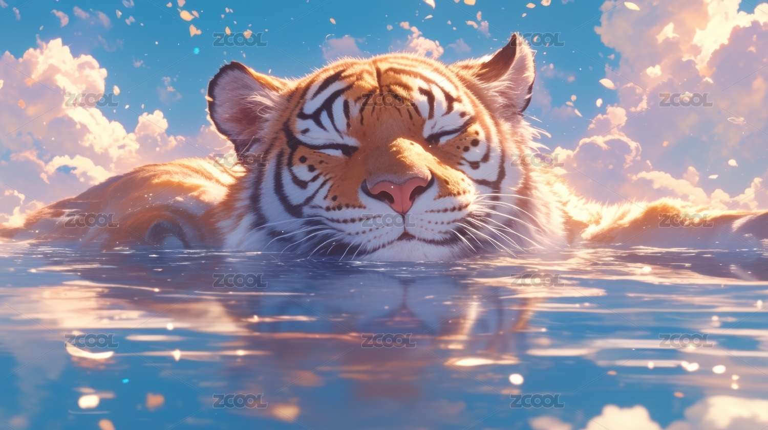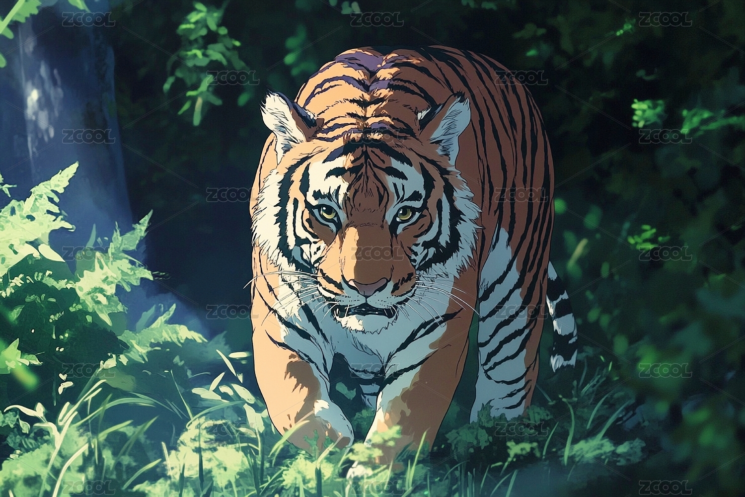 动物,户外,自然,卡通,插画,森林,老虎,大自然