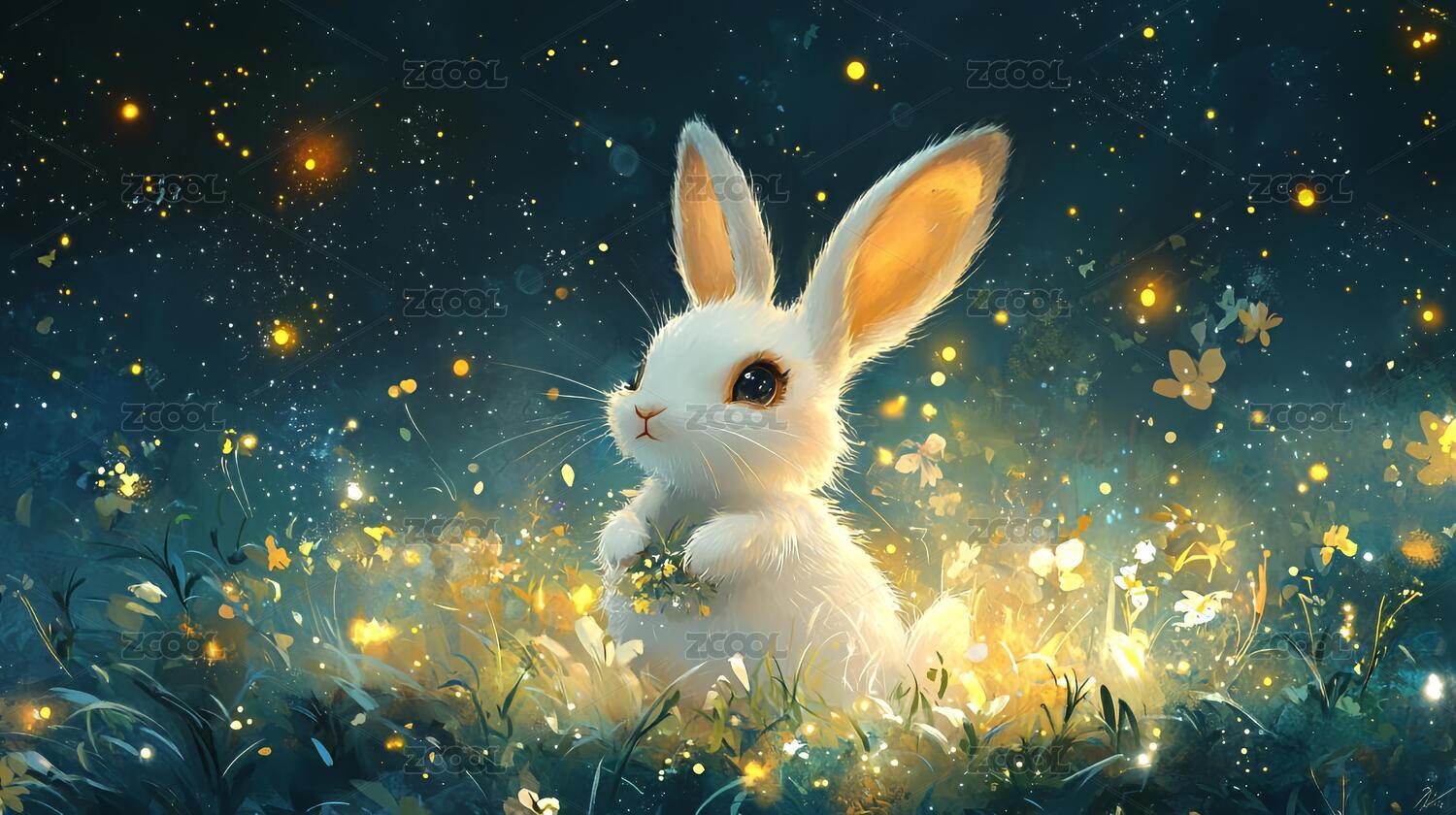 动物,户外,自然,卡通,插画,植物,阳光,树叶,宠物,兔子