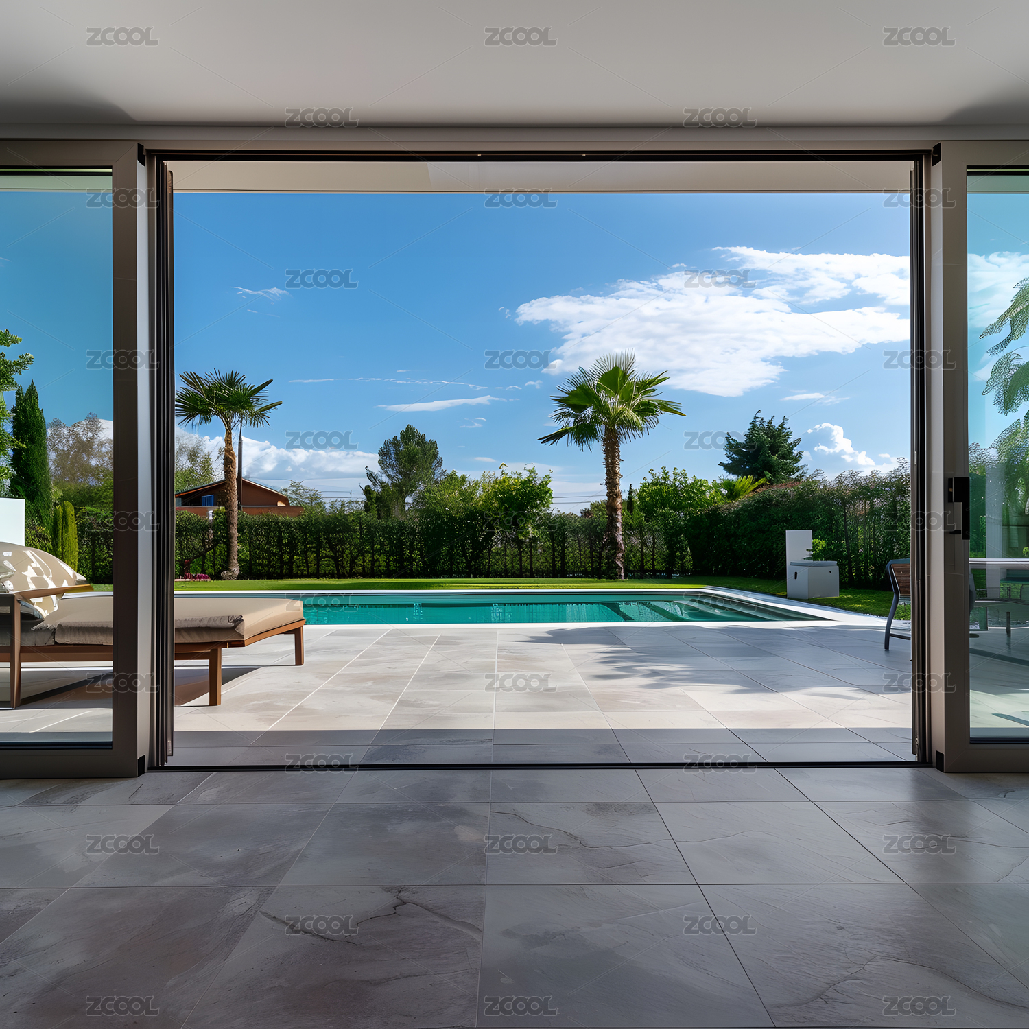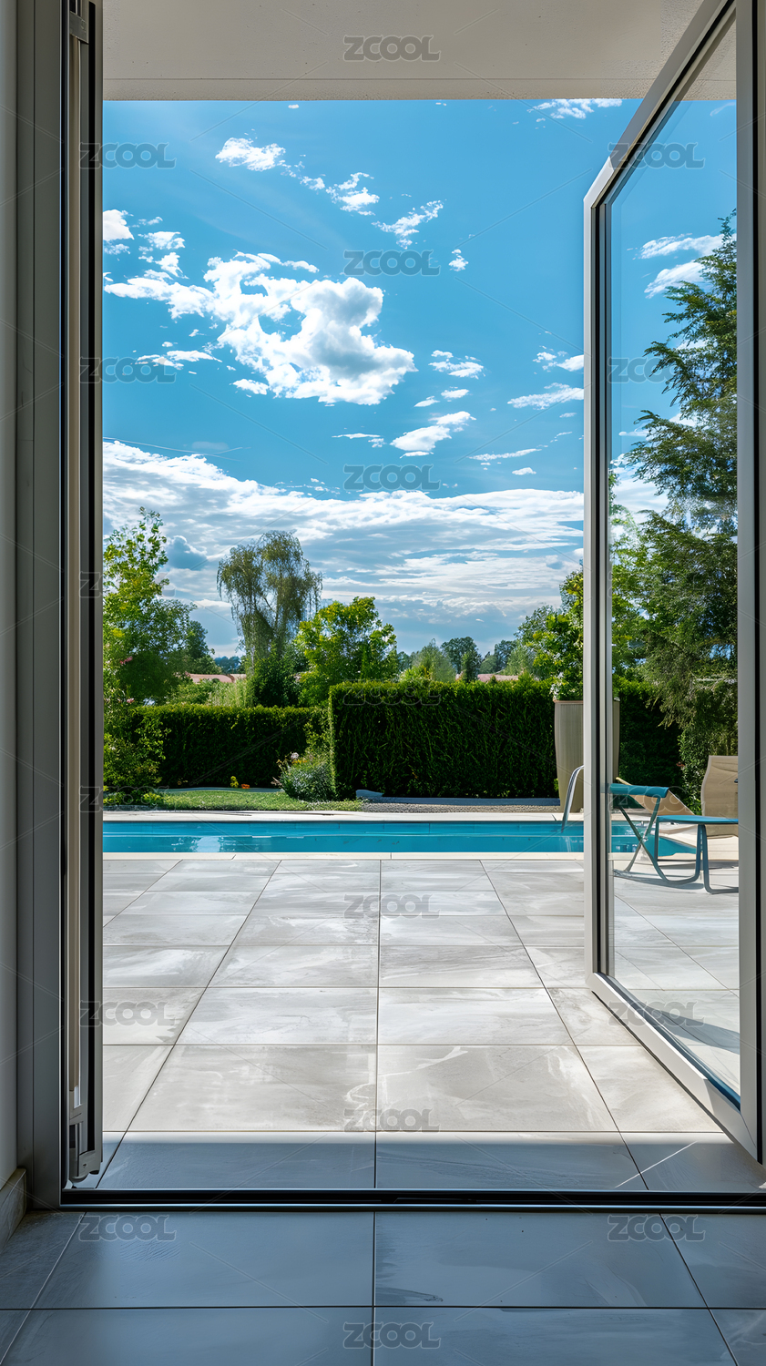 门窗前的游泳池