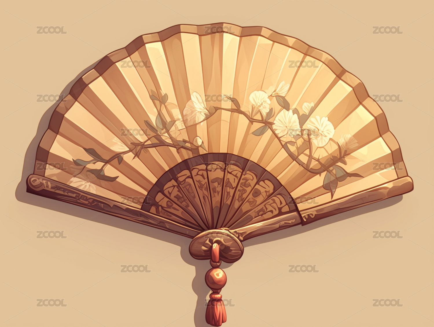 春天扇子上的花朵插画