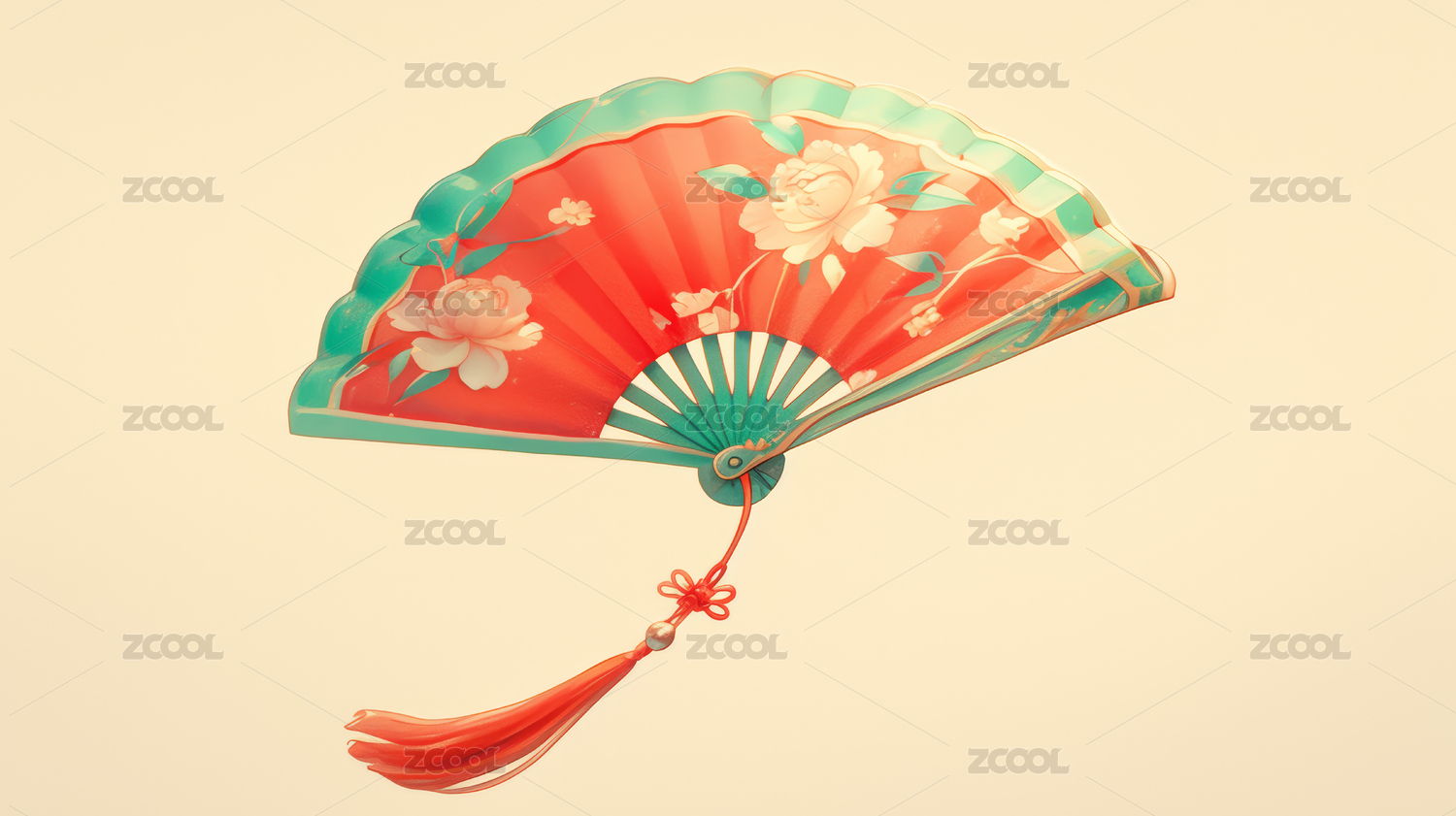 红色花卉折扇