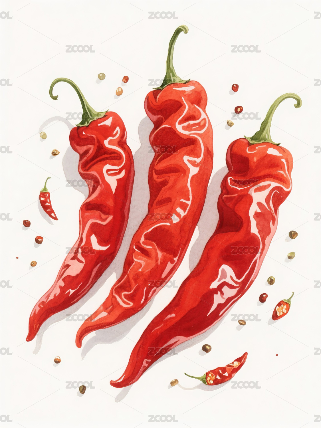 红辣椒,水彩画,水彩,绘画,艺术,食物,蔬菜,辣椒,植物,红色