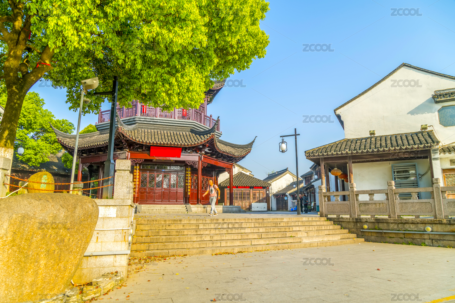 中国江苏苏州张家港凤凰镇恬庄古镇老街天际风光