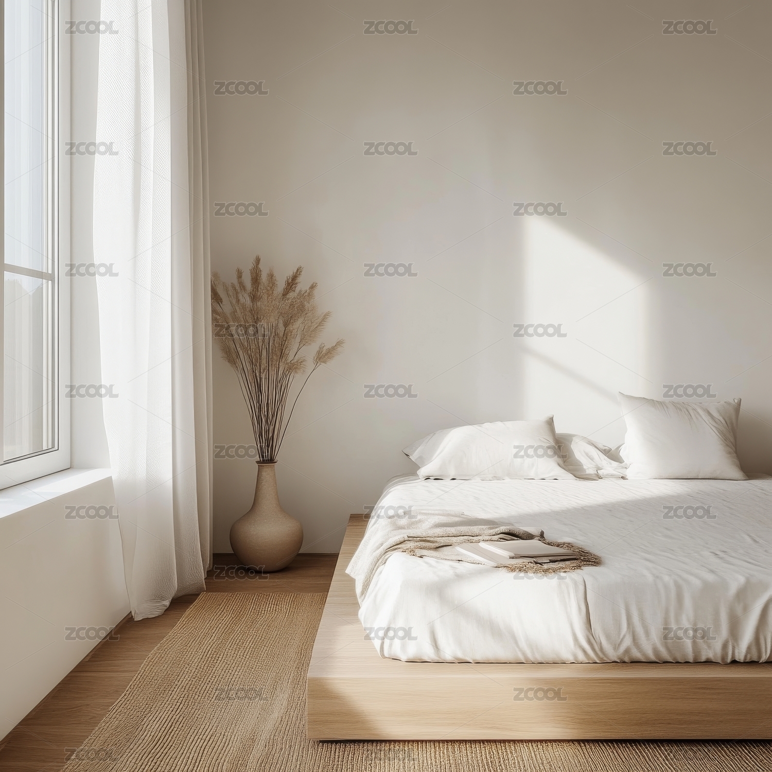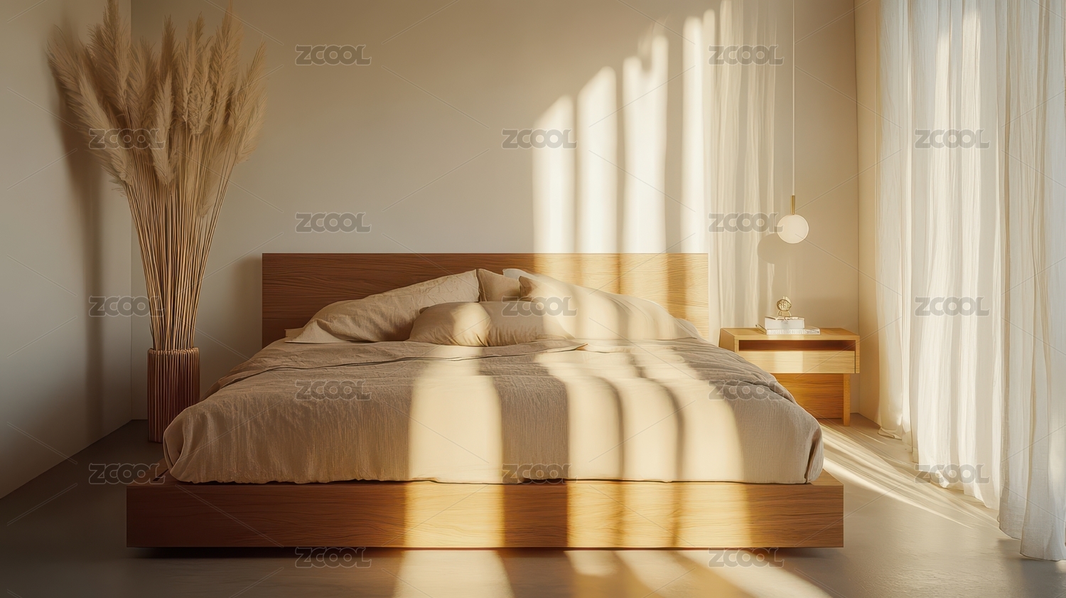 卧室,床,木质,舒适,植物,家装,自然,简约,床头柜,空间