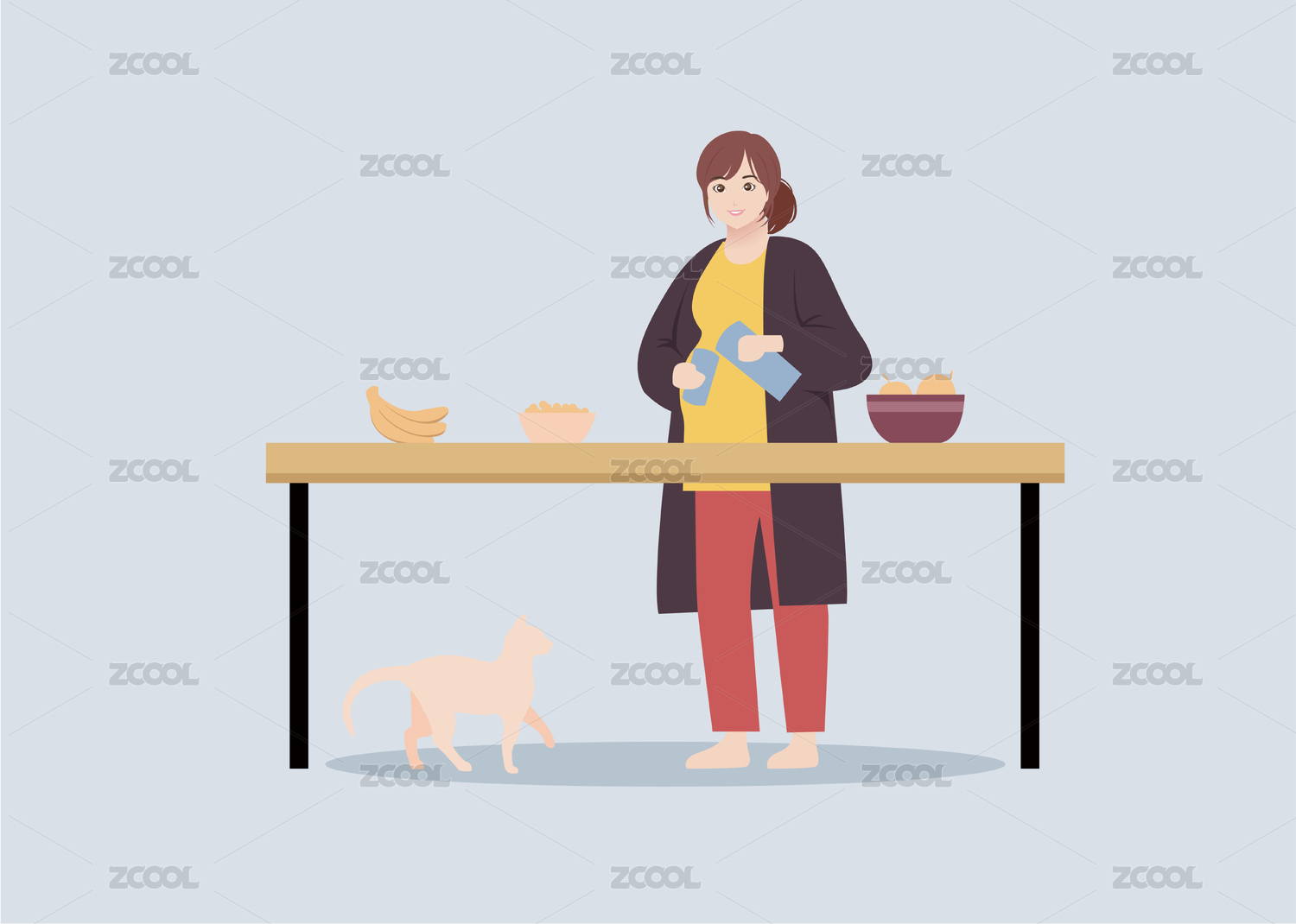 插画,手绘,装饰画,水彩,水墨,孕妇,二胎,怀孕,生育,健康
