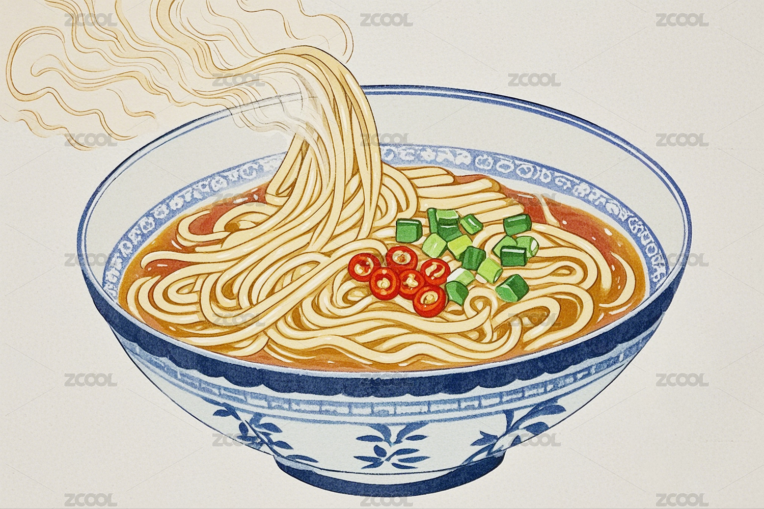 食品,插画,美味,面条,健康食物,晚餐,菜单,碗,国风,国潮风