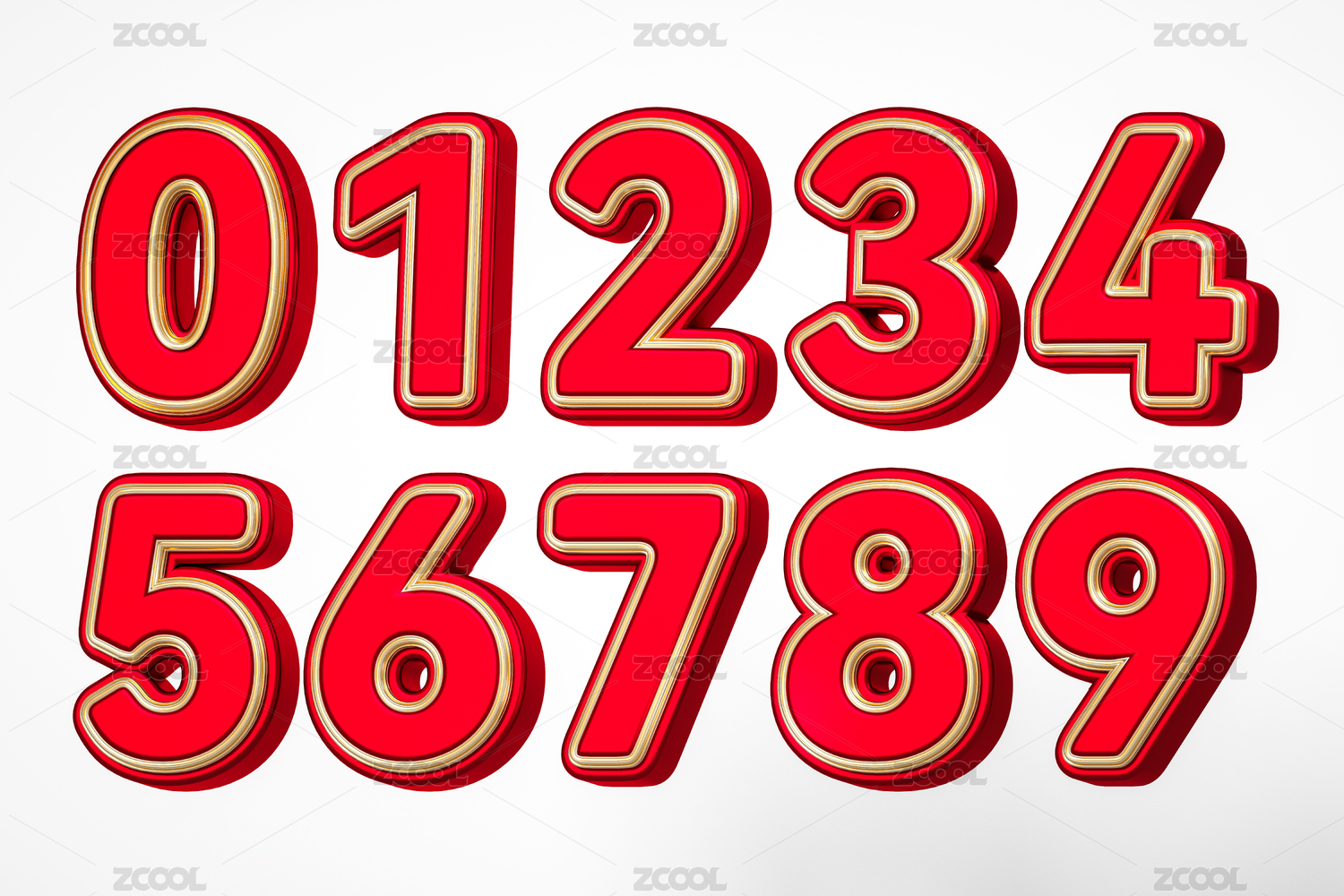 0-9阿拉伯黑色毛笔数字和红色的背景