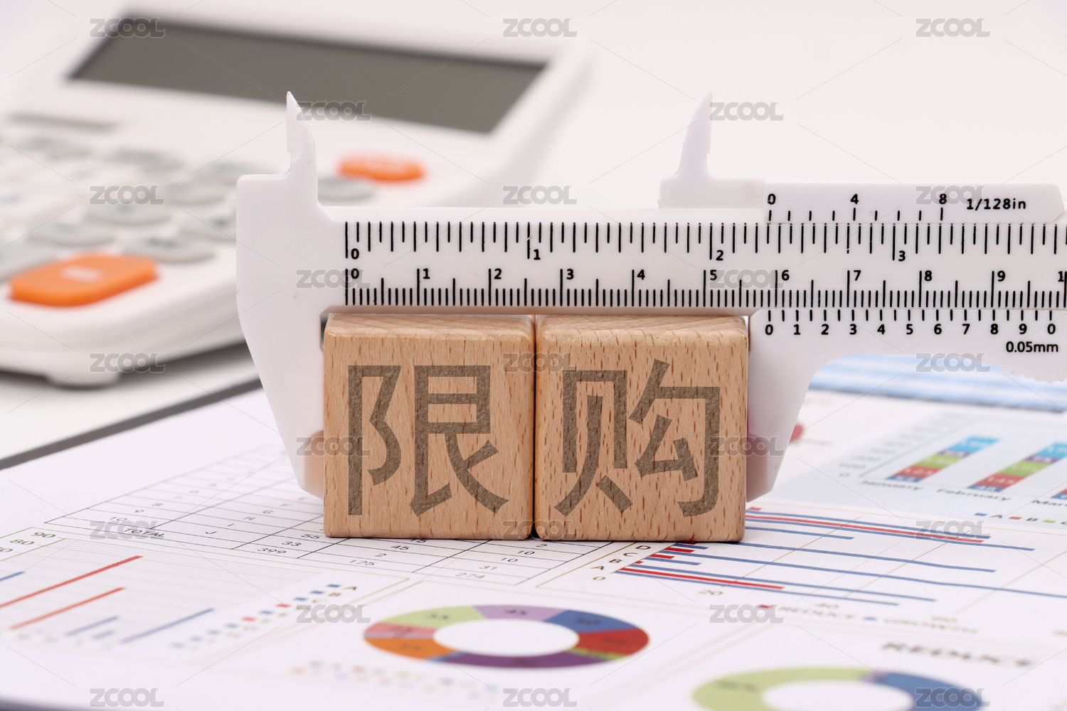 金融办公用品上放着文字积木限购