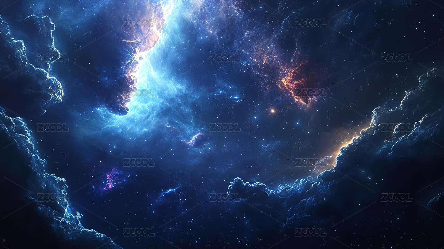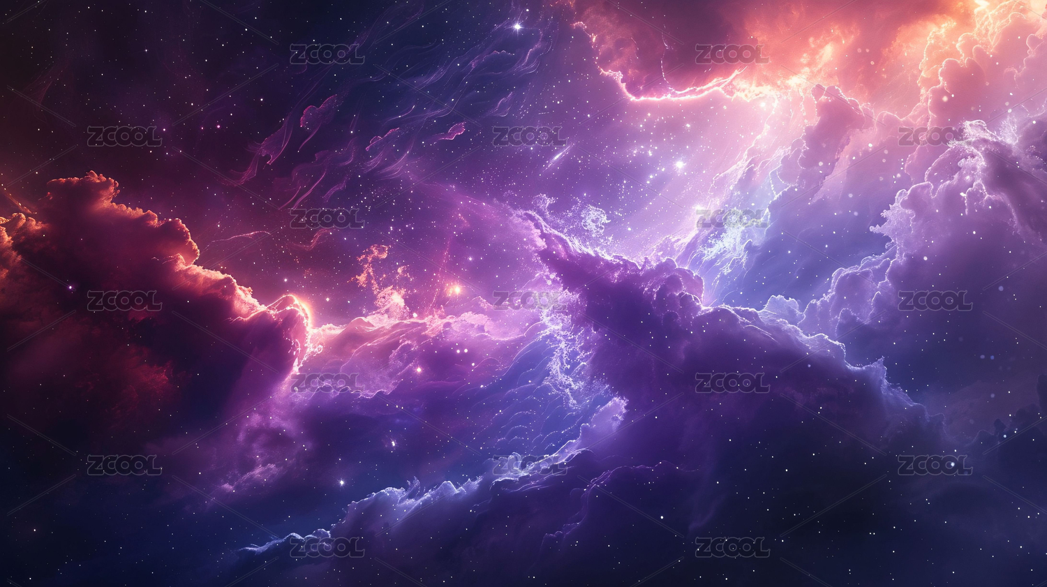 抽象星空紫色闪亮星云银河系和行星背景星系