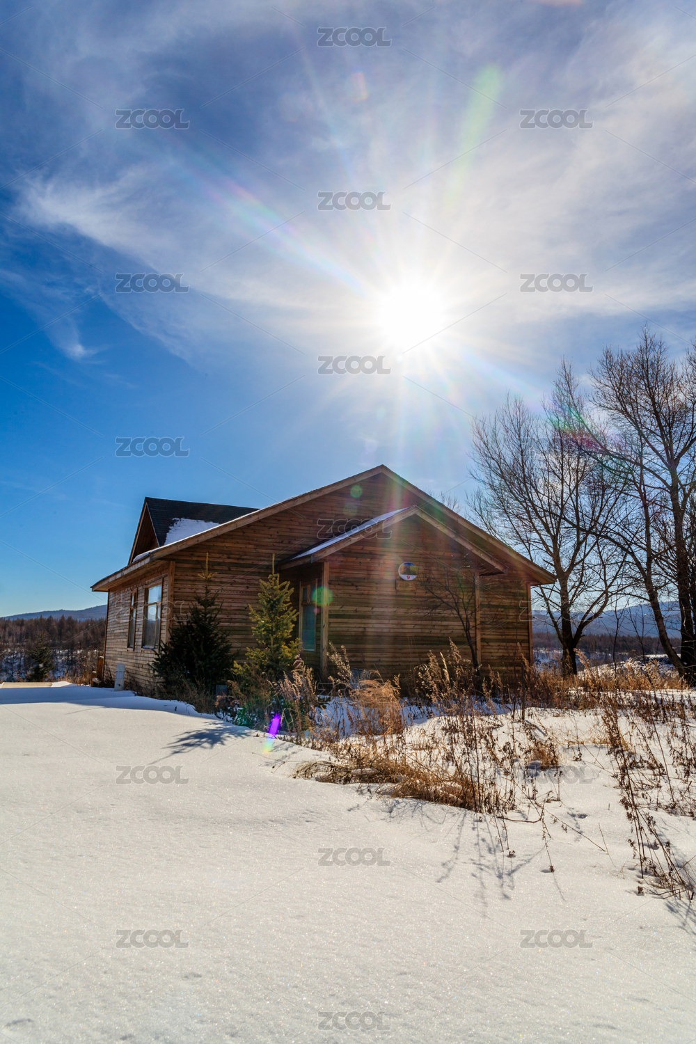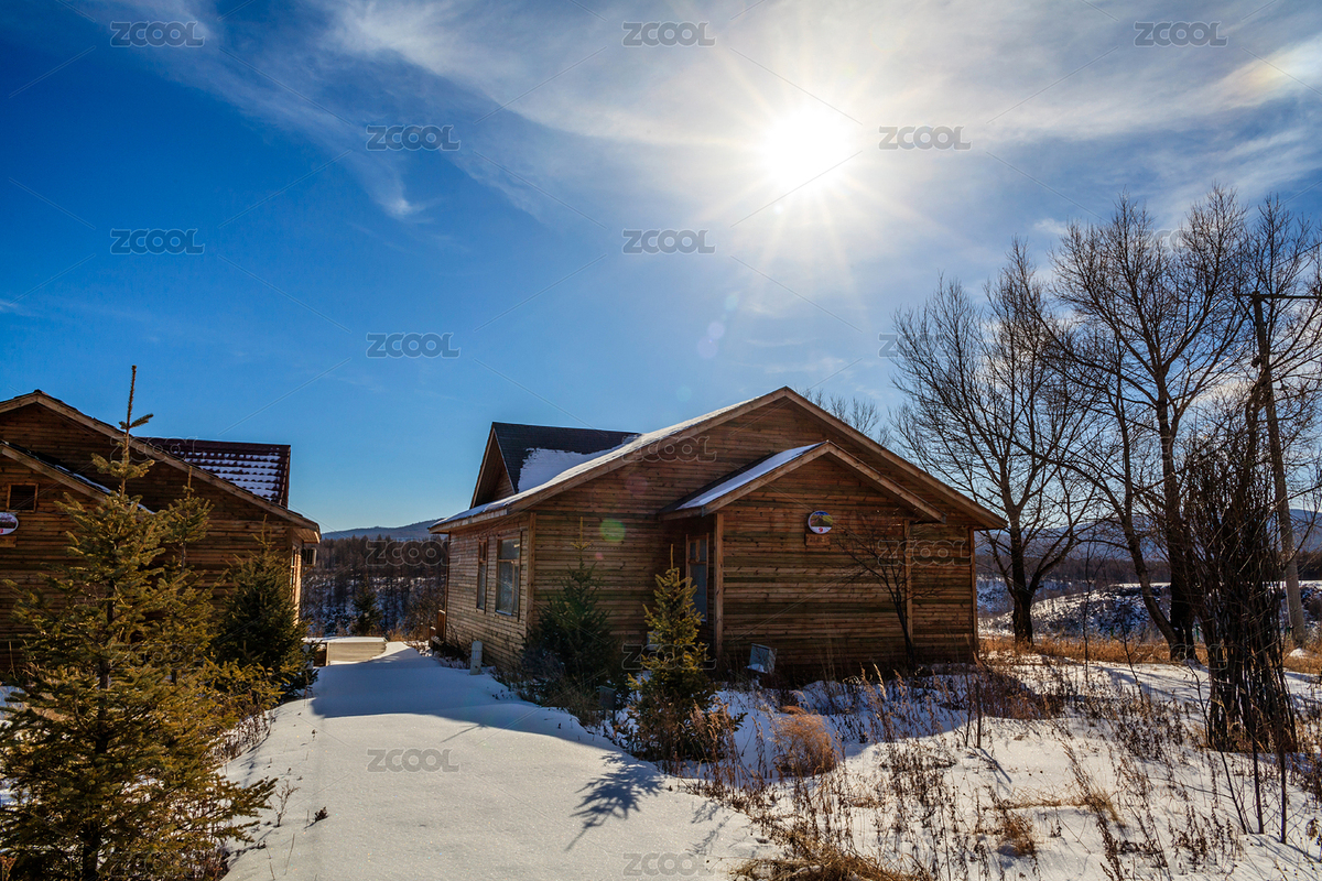 亚洲,中国,华北,内蒙古,兴安盟,大兴安岭,阿尔山,度假村,积雪,太阳