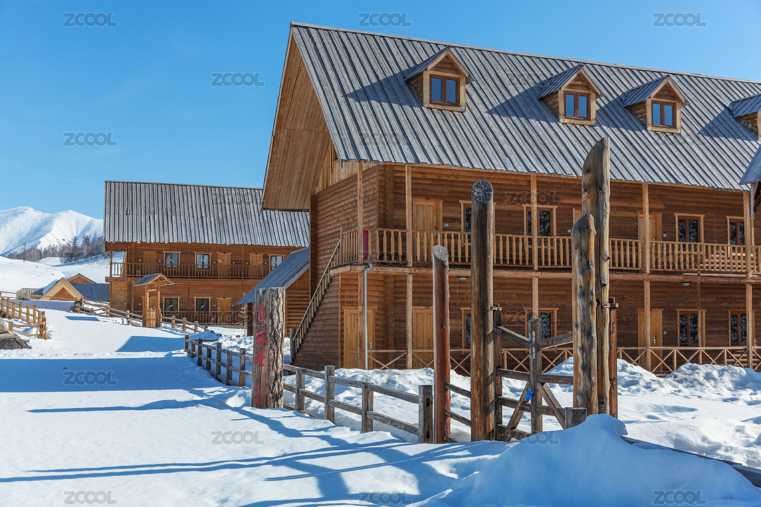 中国河北张家口库伦淖景区木屋别墅建筑群