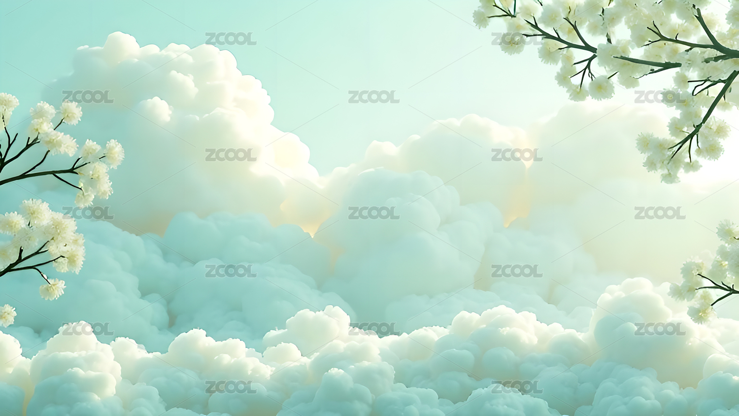 简约梨花和云层青色调背景图