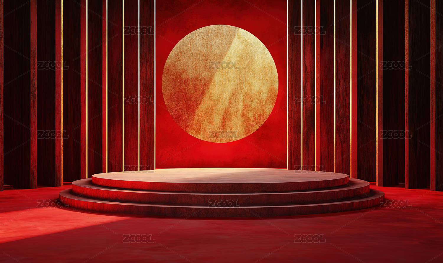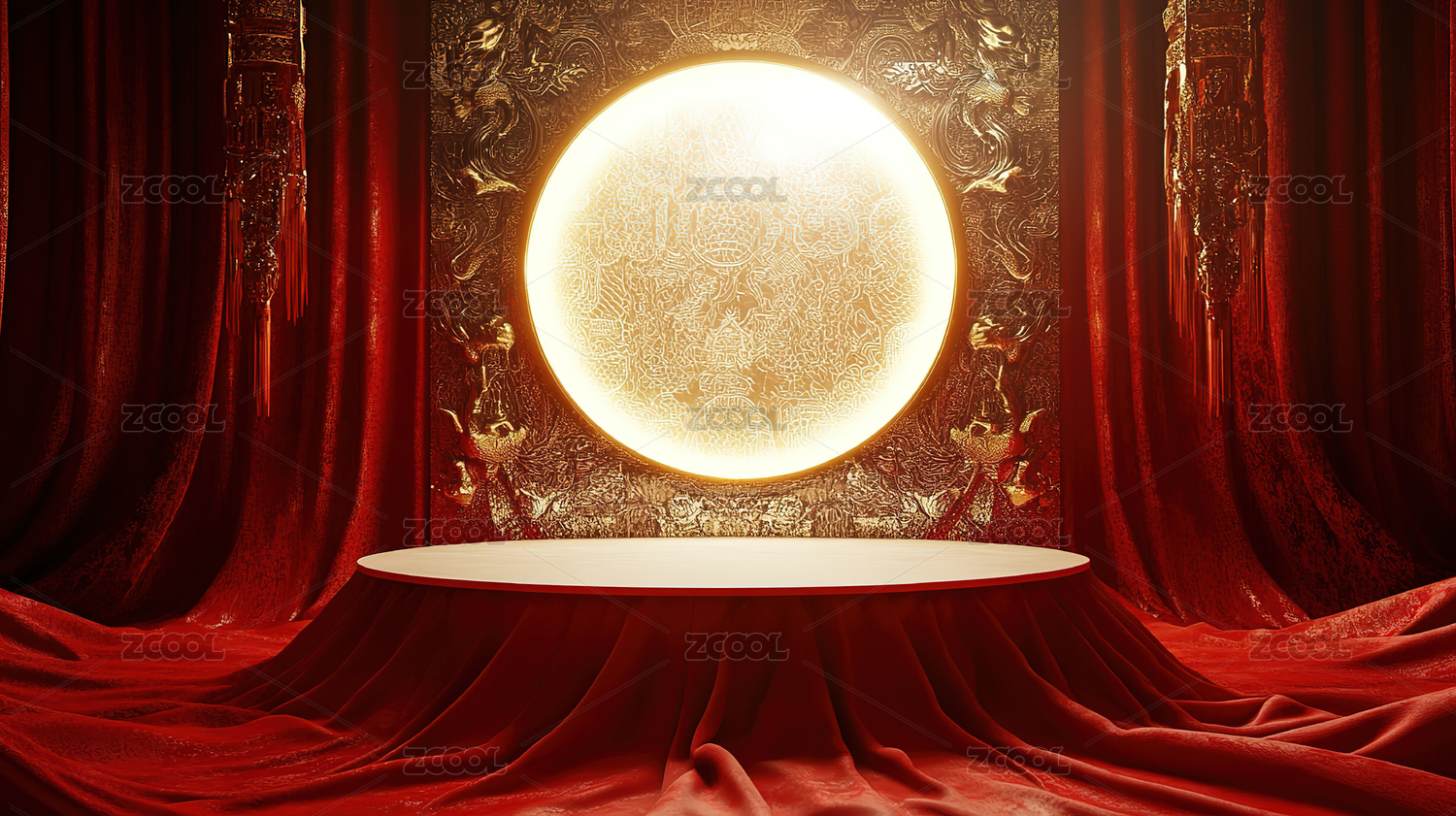 国风国潮文化场景的红色展示台