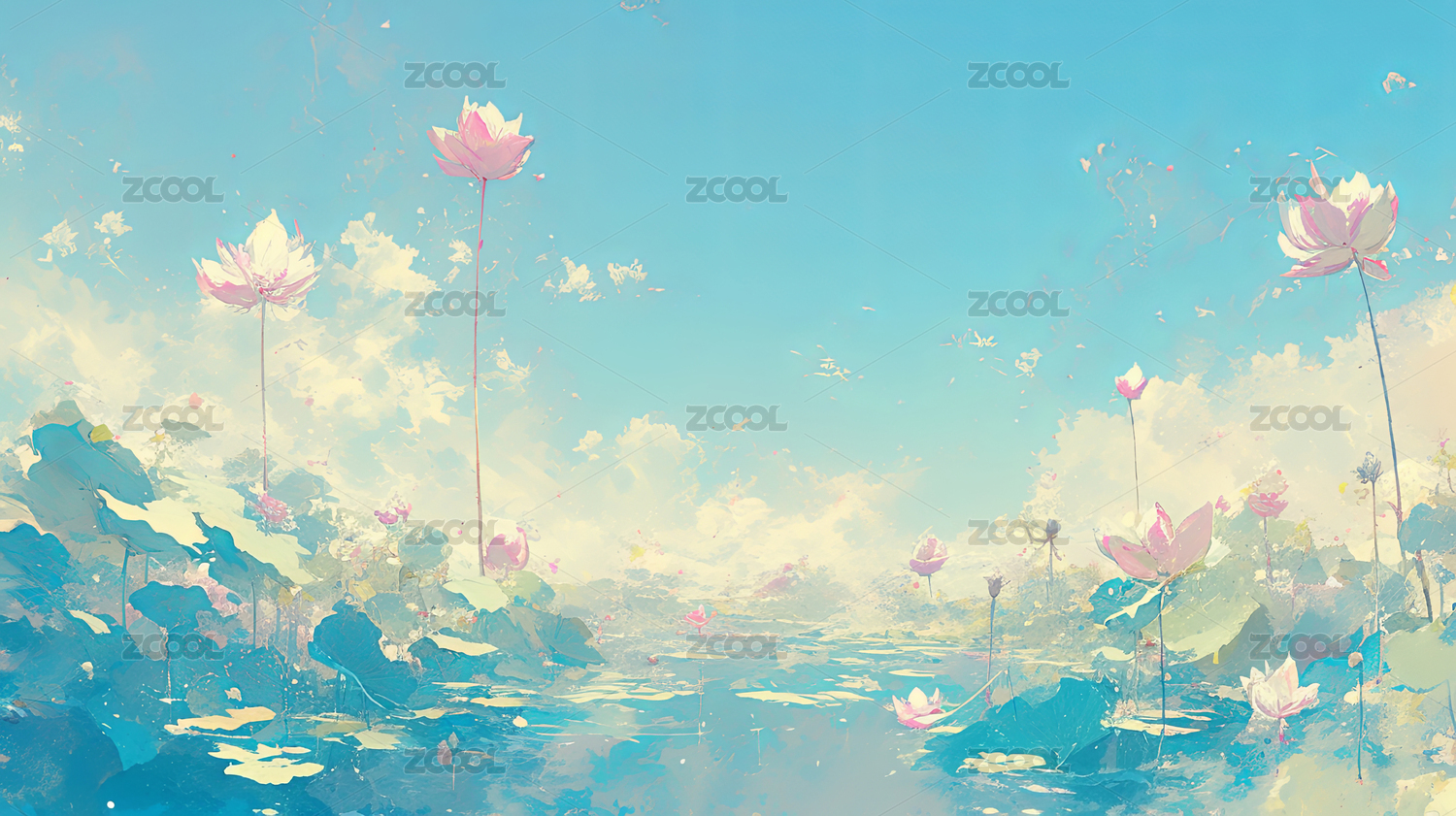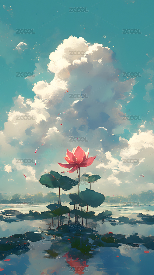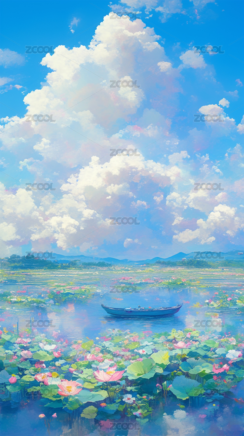 风景二十四节气荷花云朵壁纸屏保