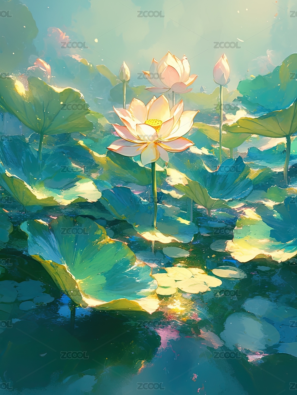 夏日清透荷花插画
