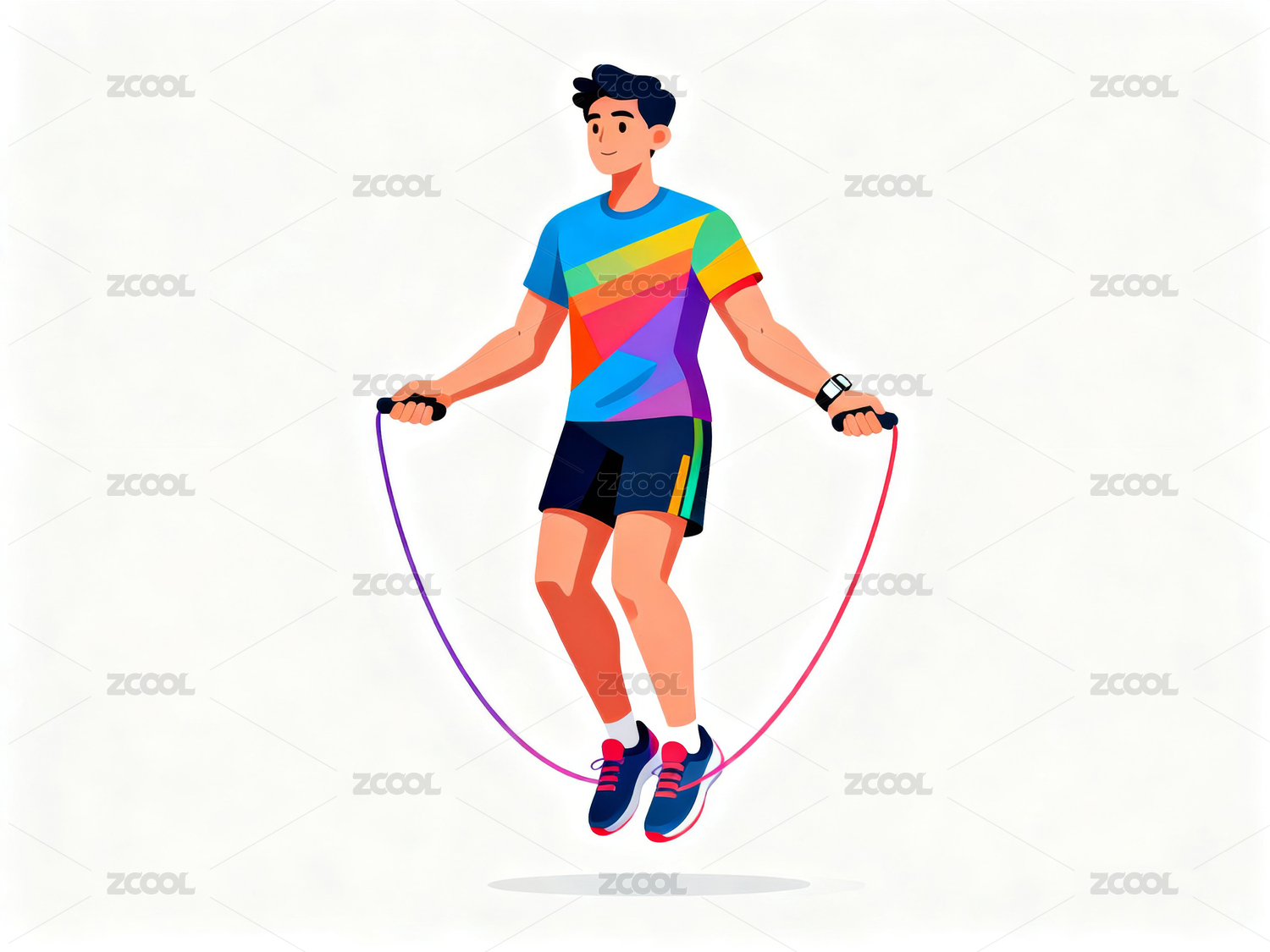运动,活力,全身像,减肥,插画,绘画,插图,跳跃,跳绳,锻炼