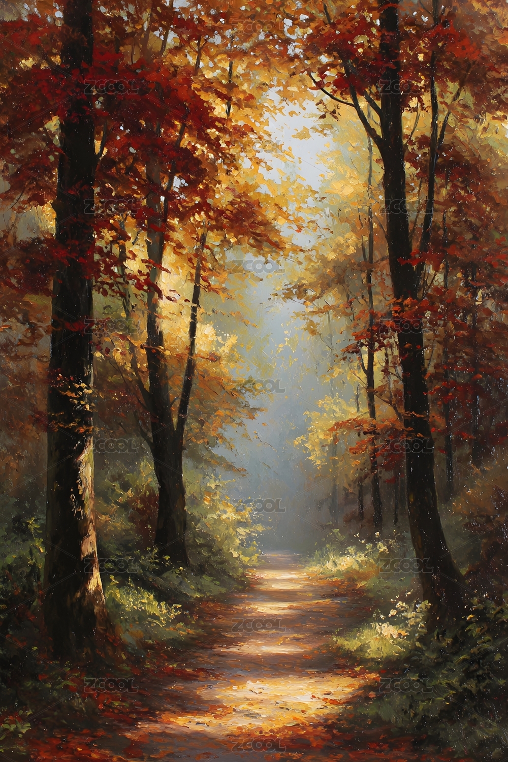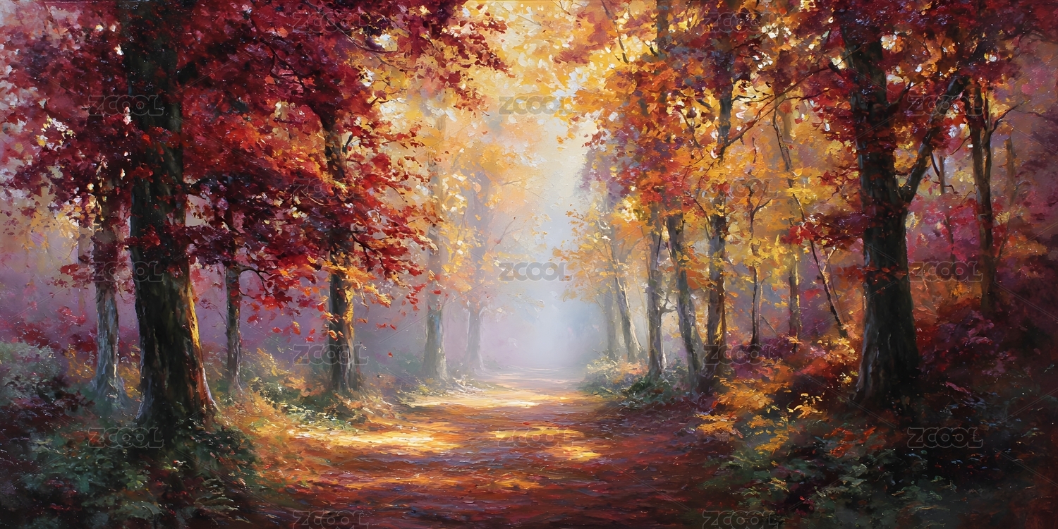 秋日森林风景油画