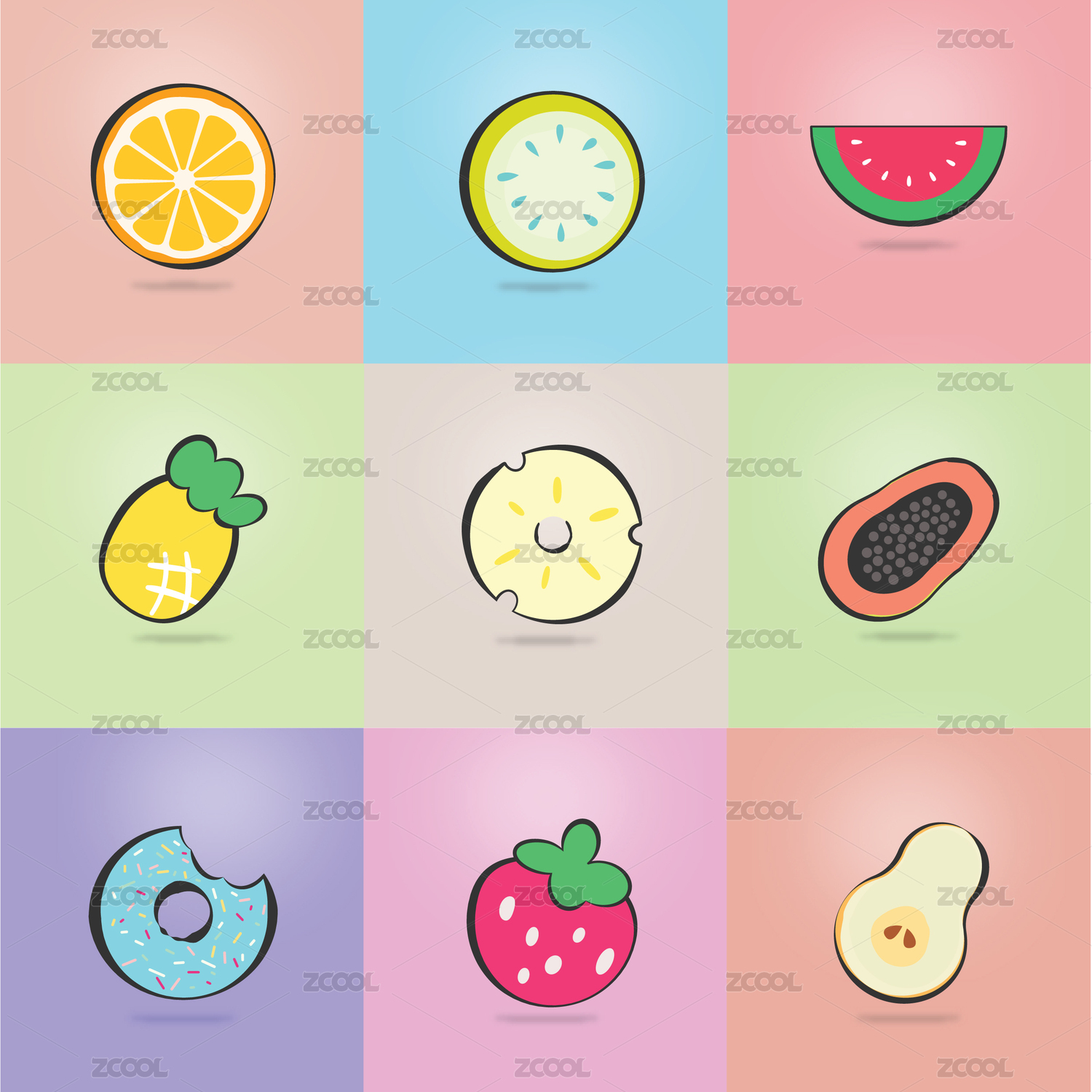 手绘,水果,切面,插画,橙子,苹果,番茄,西红柿,草莓,猕猴桃