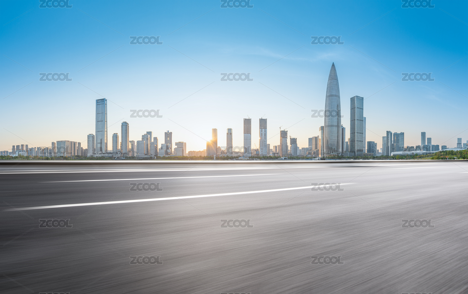 中国广东深圳市区城市天际线和空白无人的机动车道