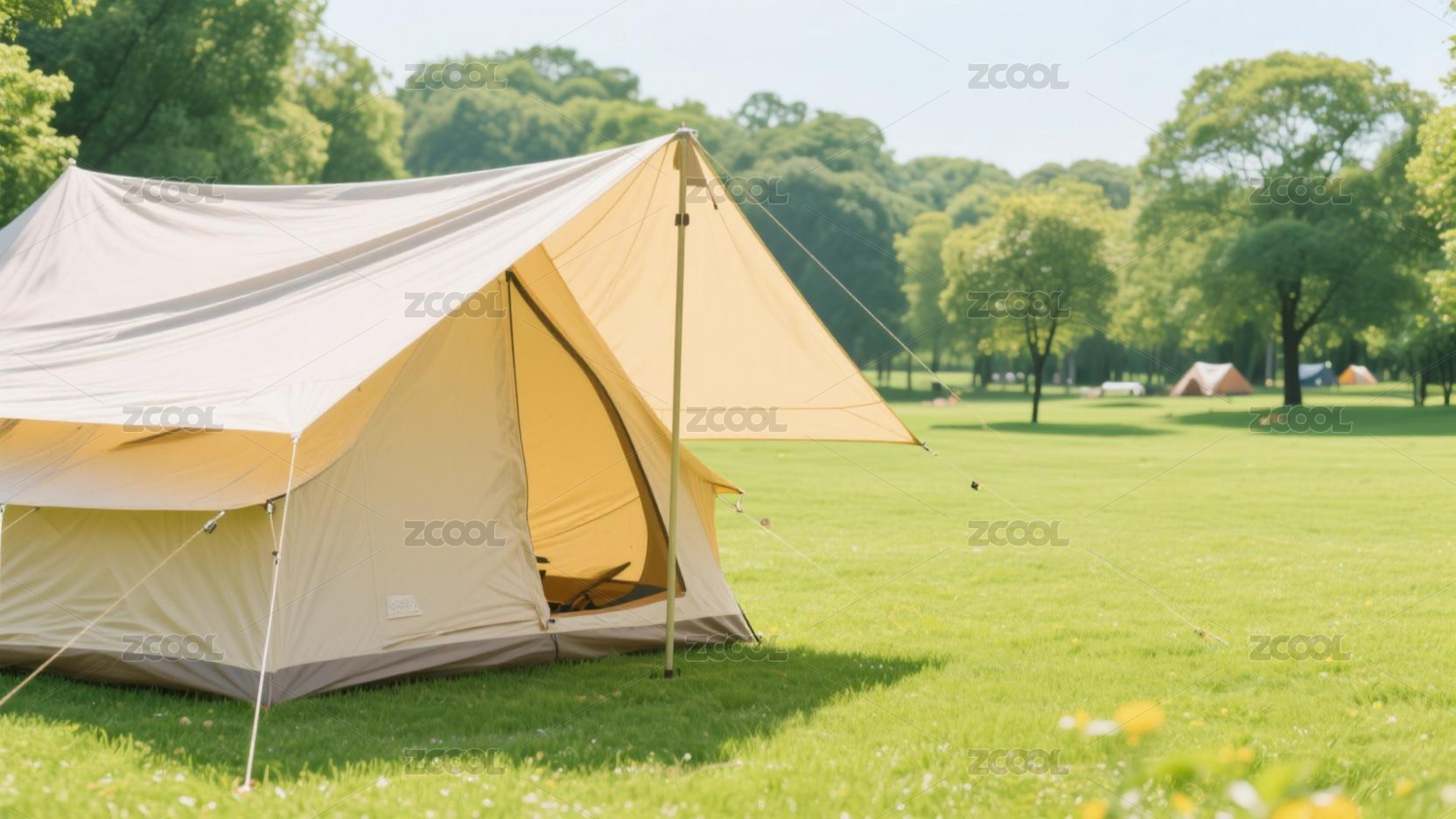 夏季武汉梨园景区内在草坪上搭帐篷露营