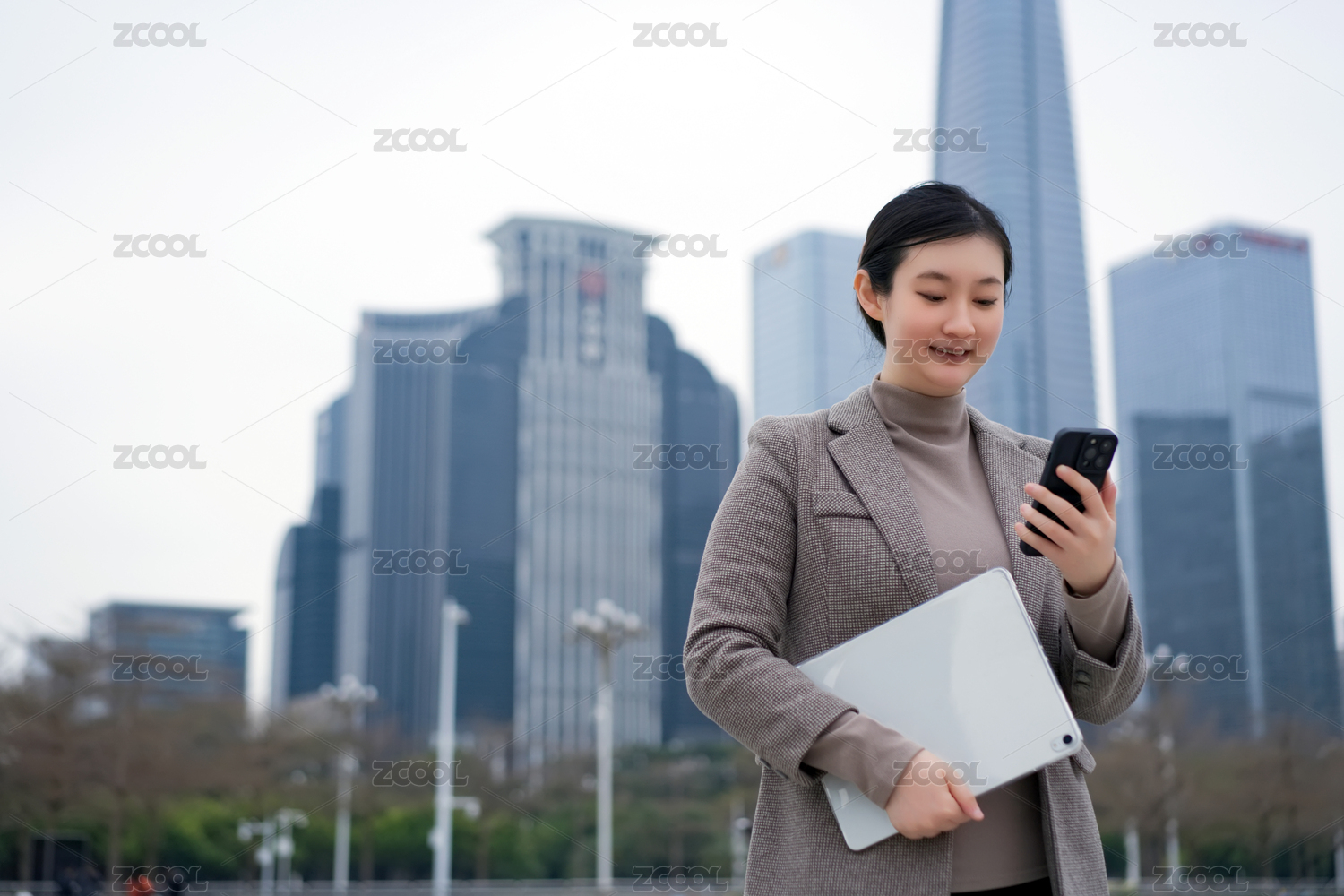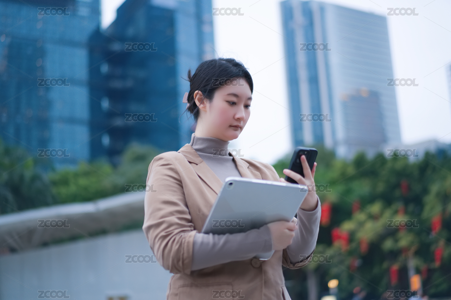 职业女性在城市环境中使用智能手机