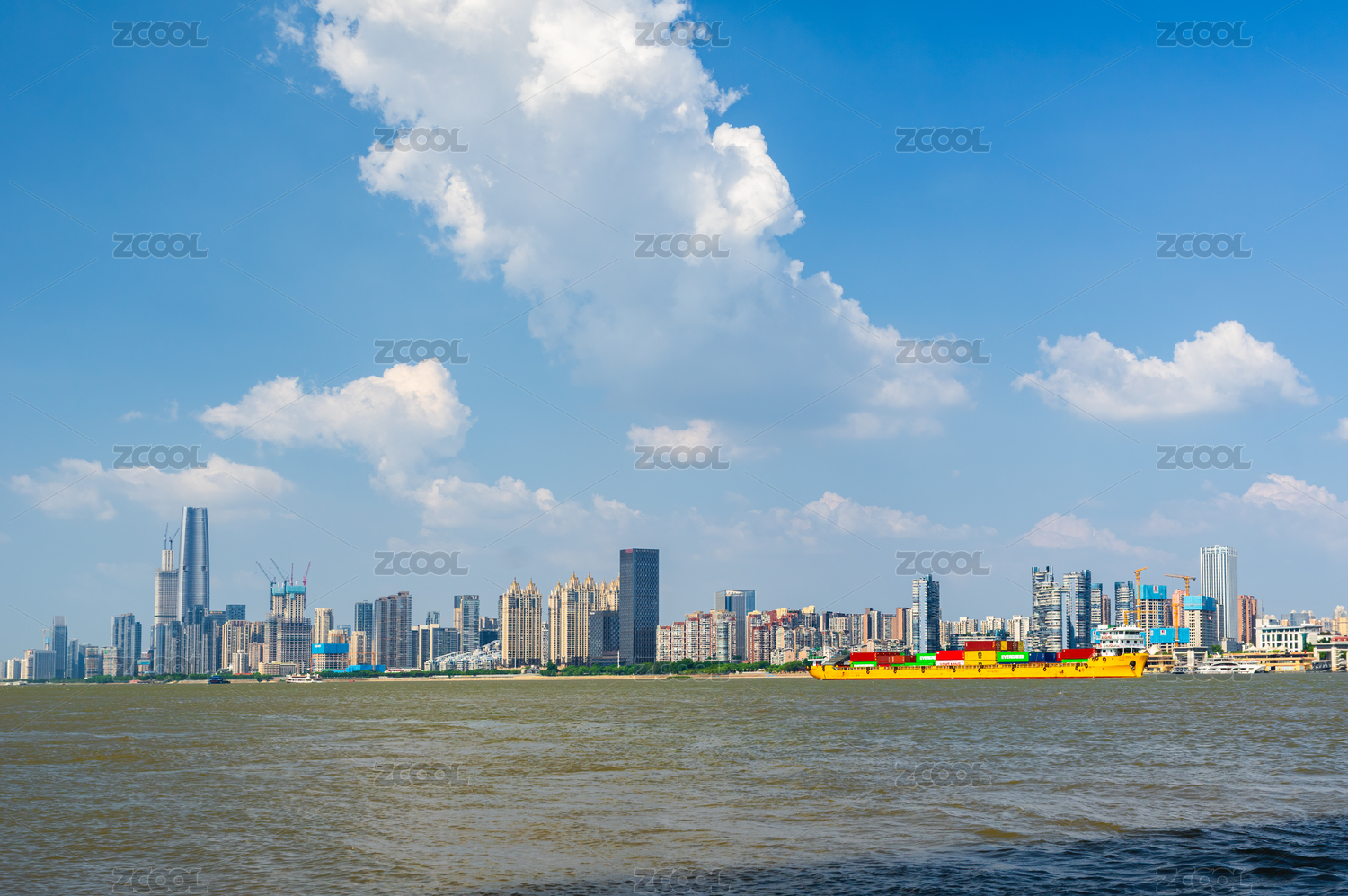 上海的天际线全景,与黄浦江上海中国的标志性建筑。