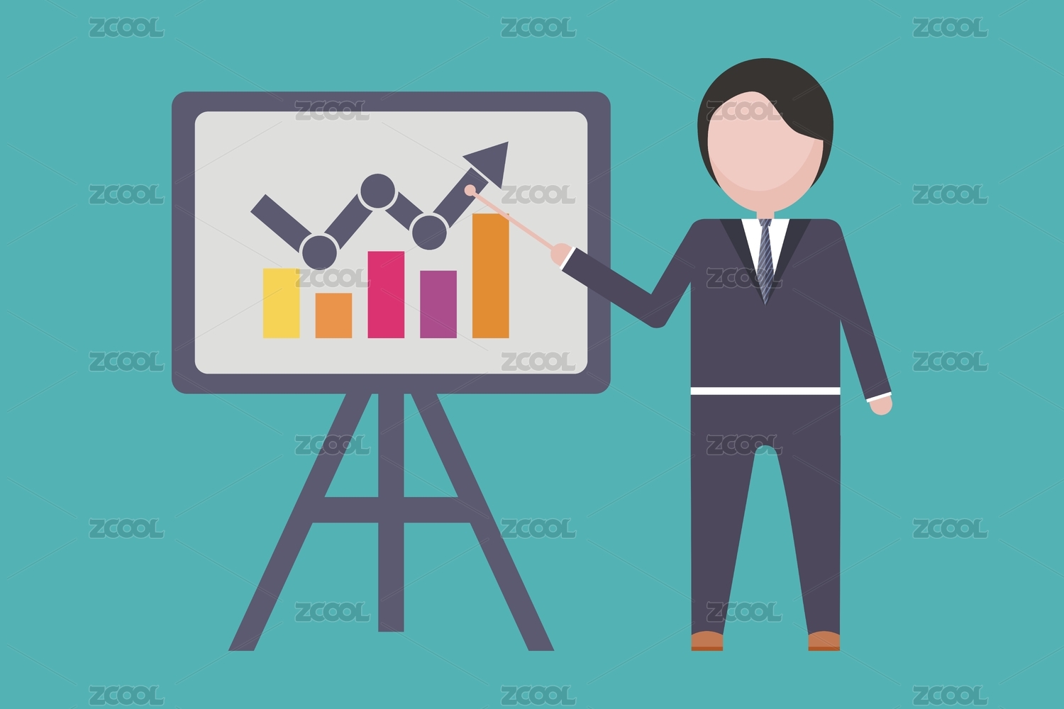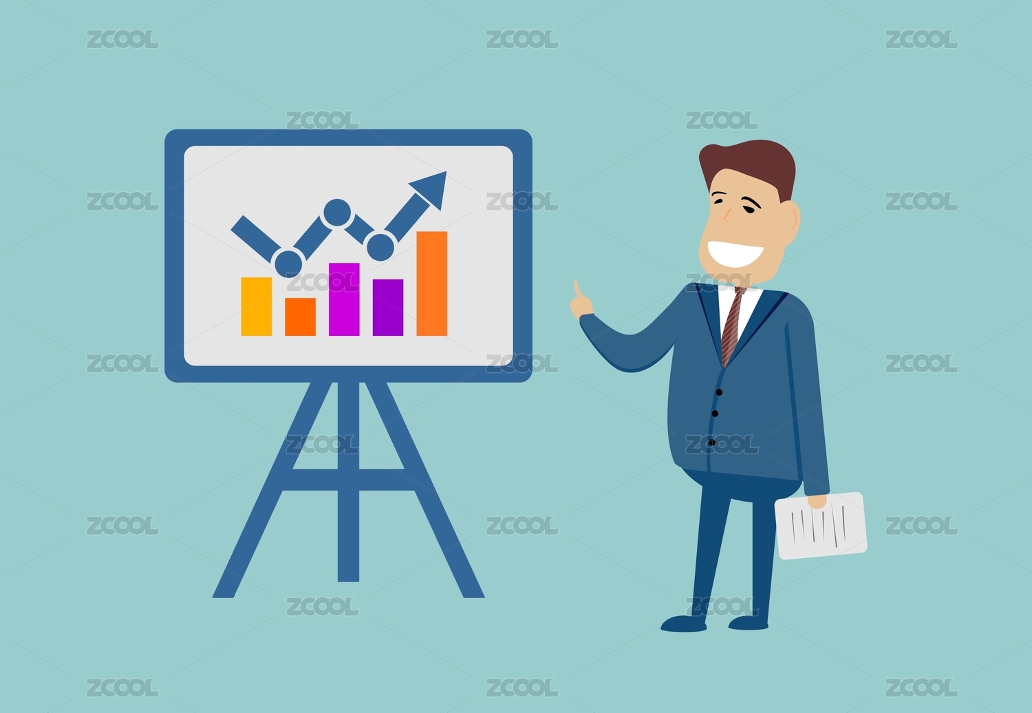 商人在展板前讲解金融经济增长,矢量设计