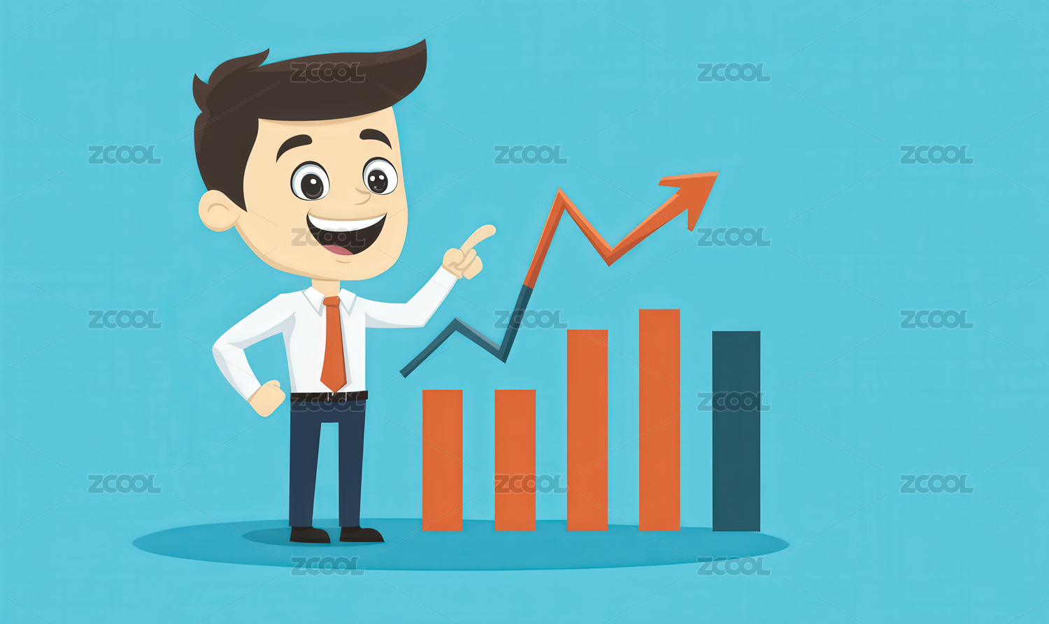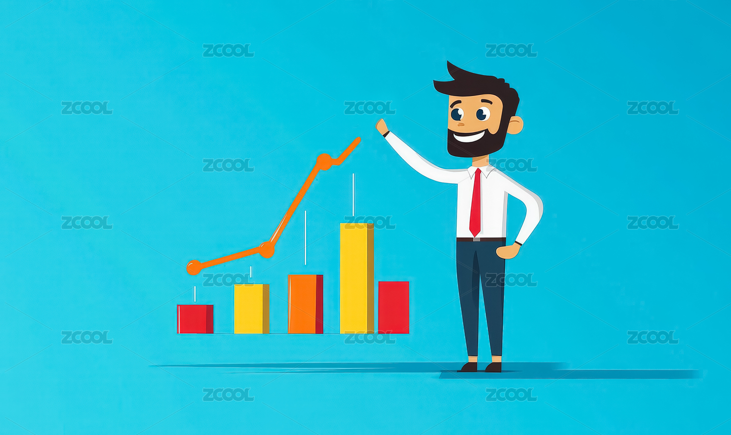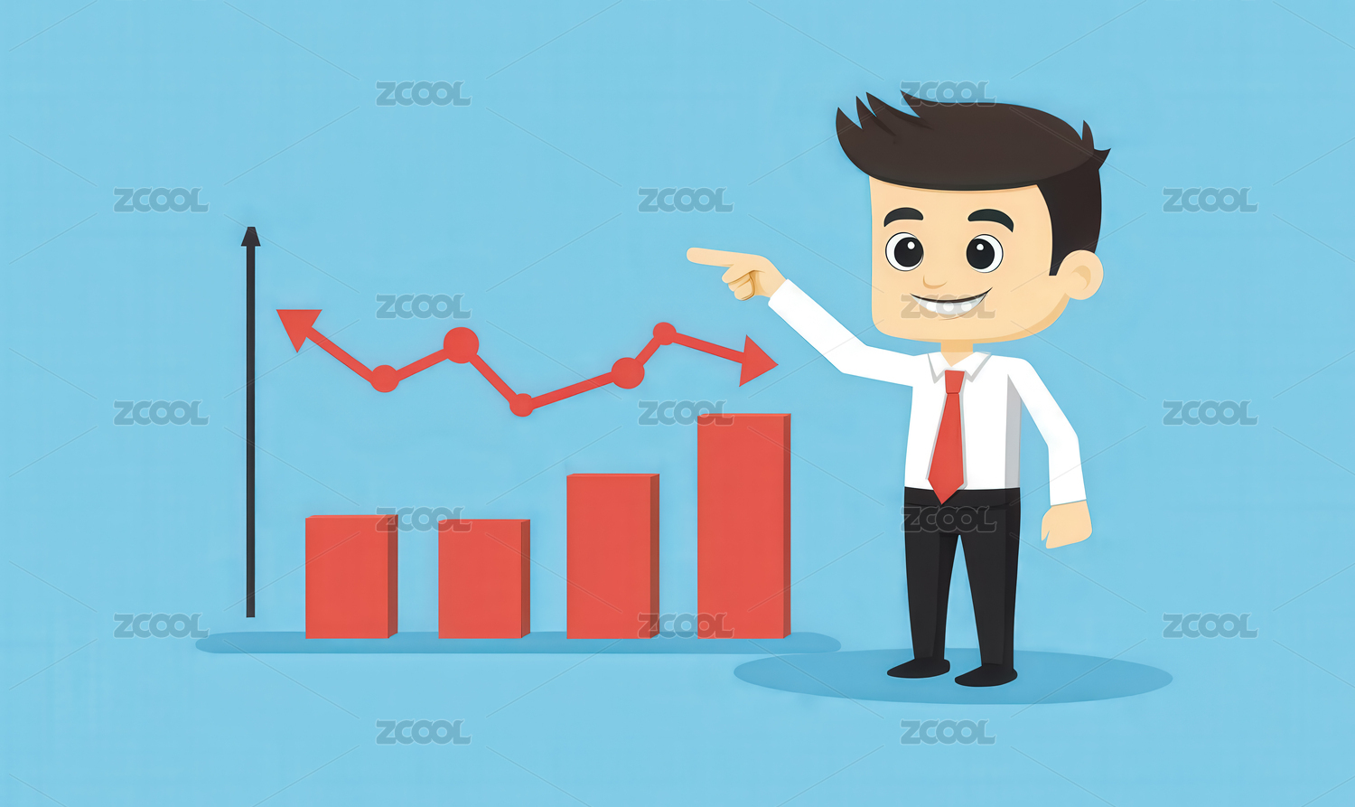 卡通手绘金融商务奔跑上升箭头插画