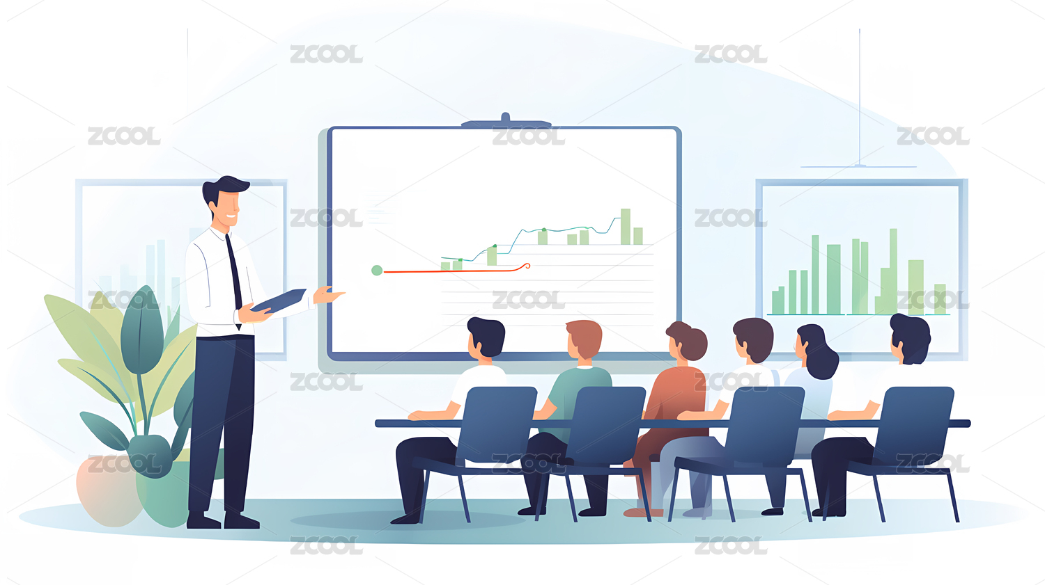 商务会议场景扁平插画