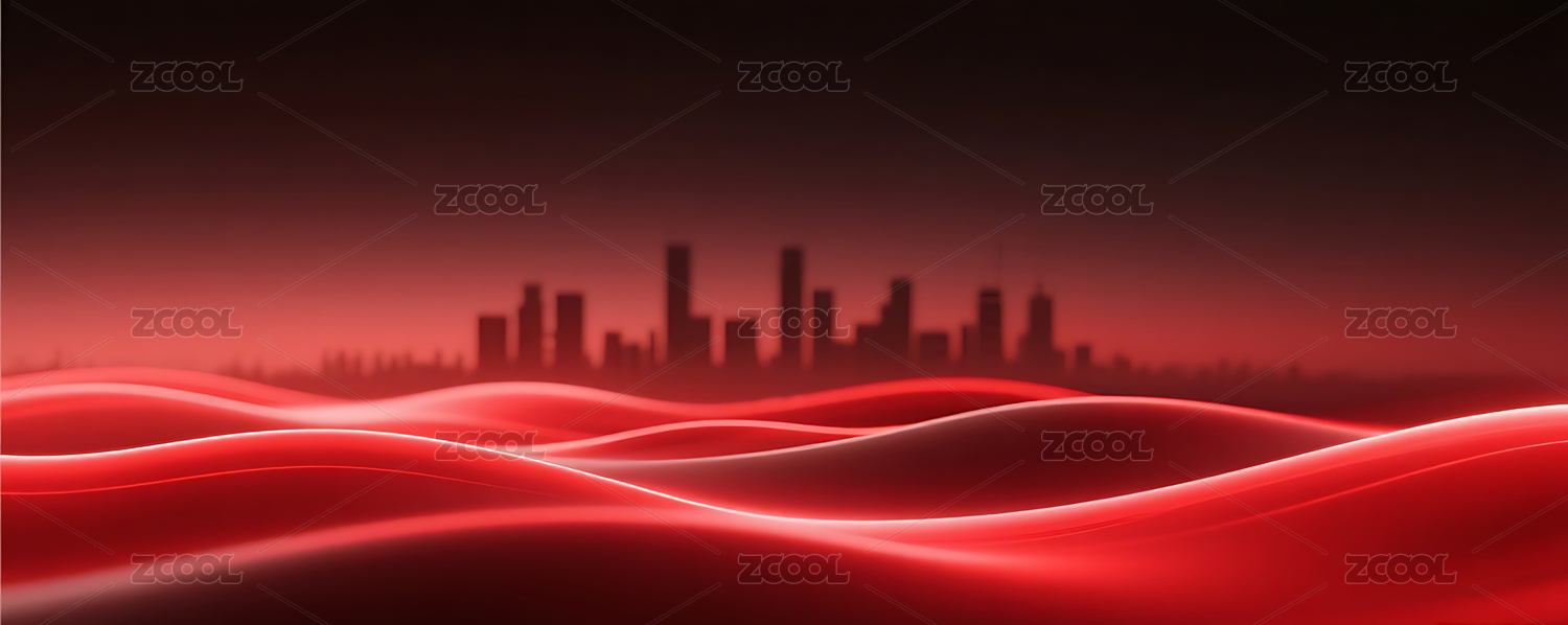 流畅的红金色渐变波浪线条玻璃城市建筑