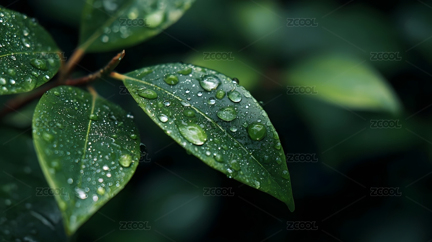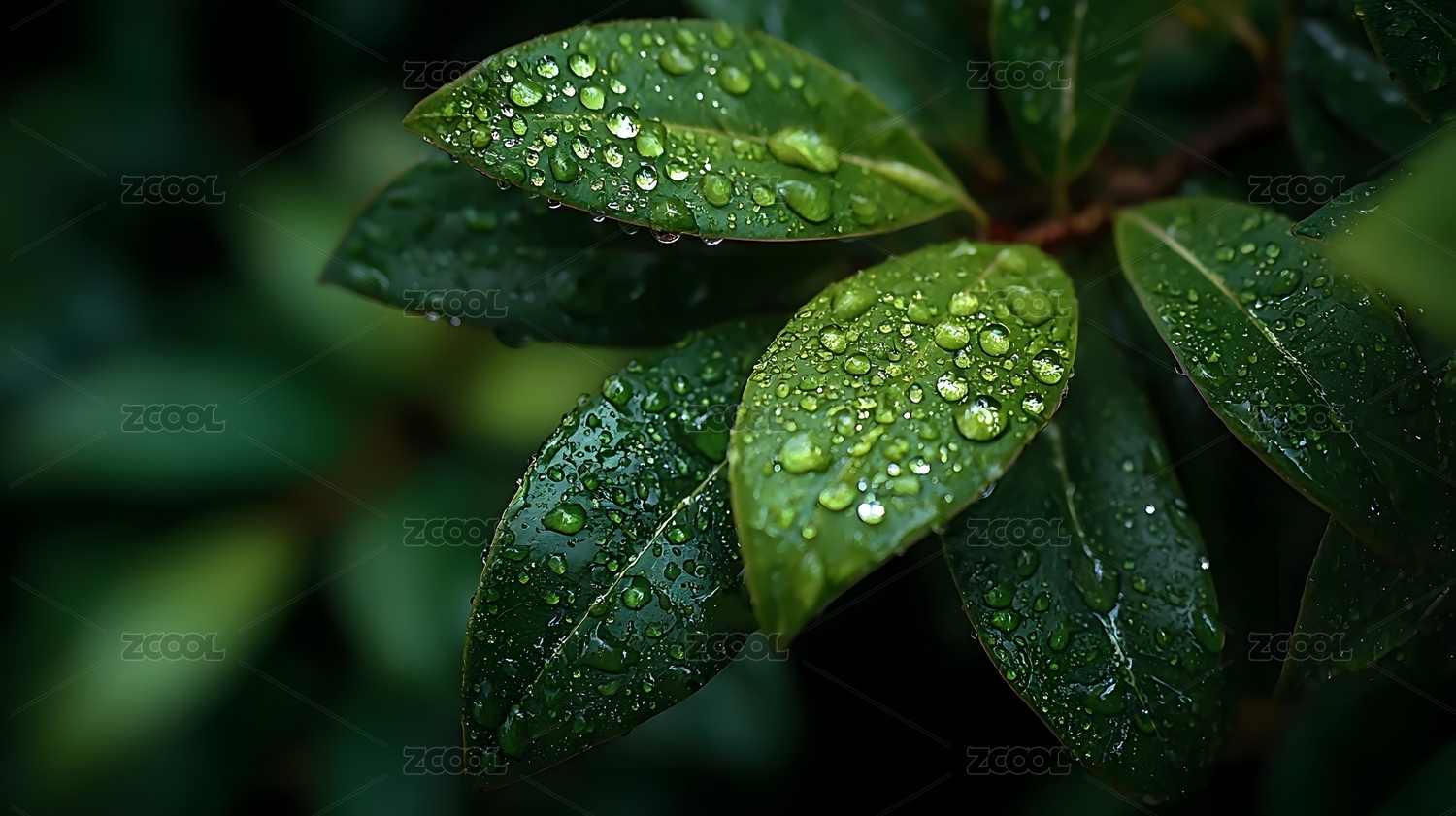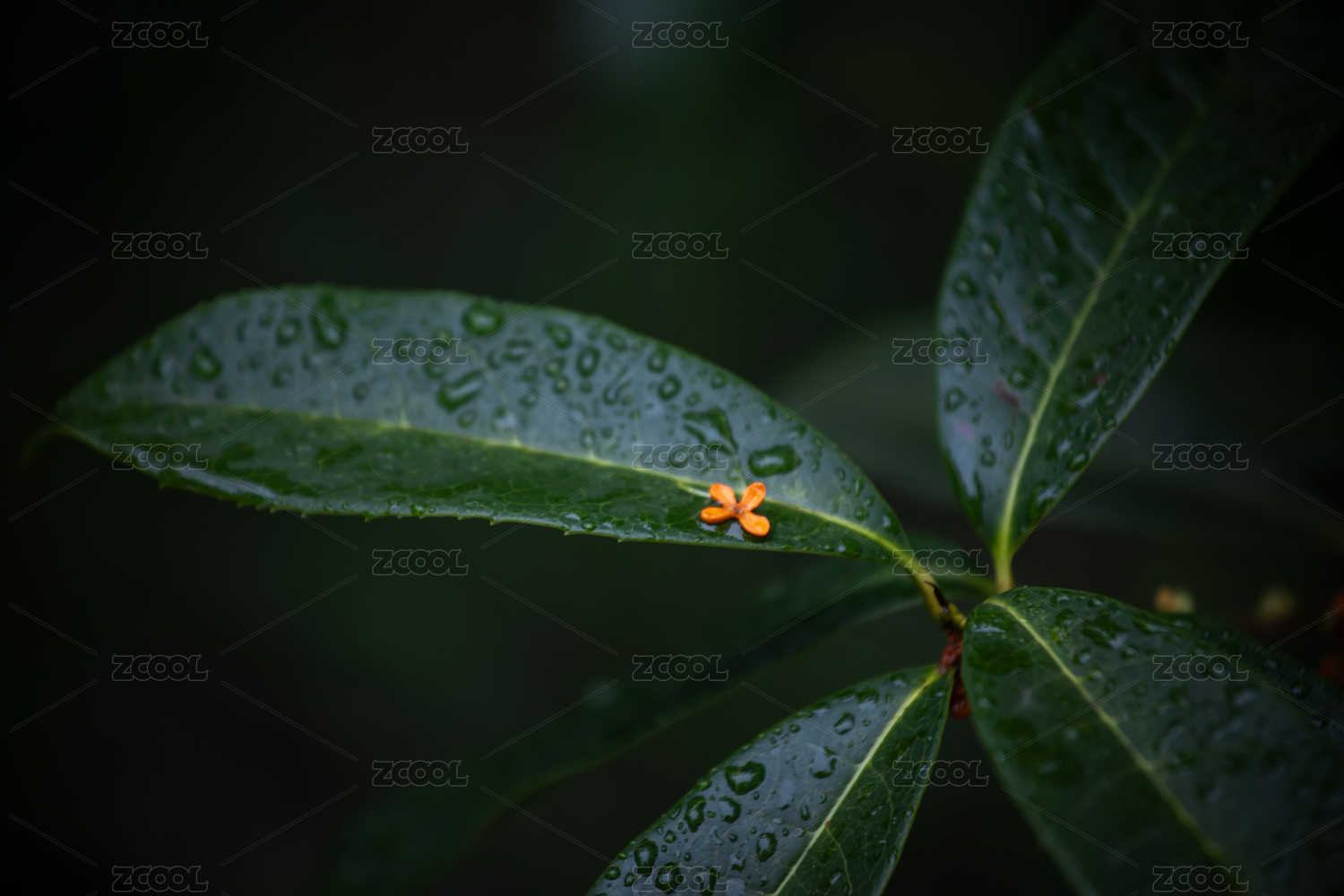 秋天森林的灌木丛红色叶片上挂满了露珠