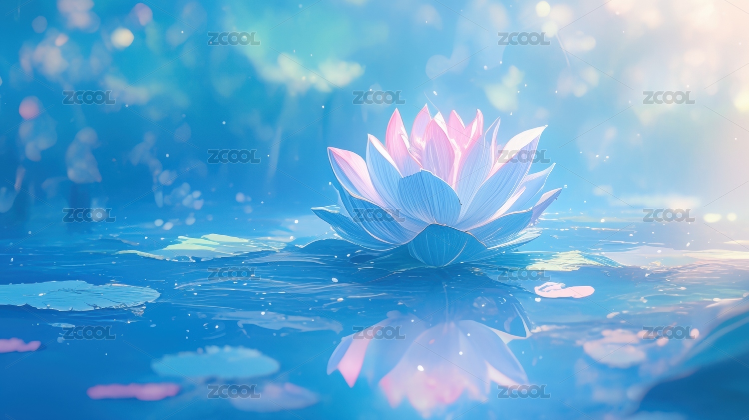 紫色莲花蓝色水面梦幻