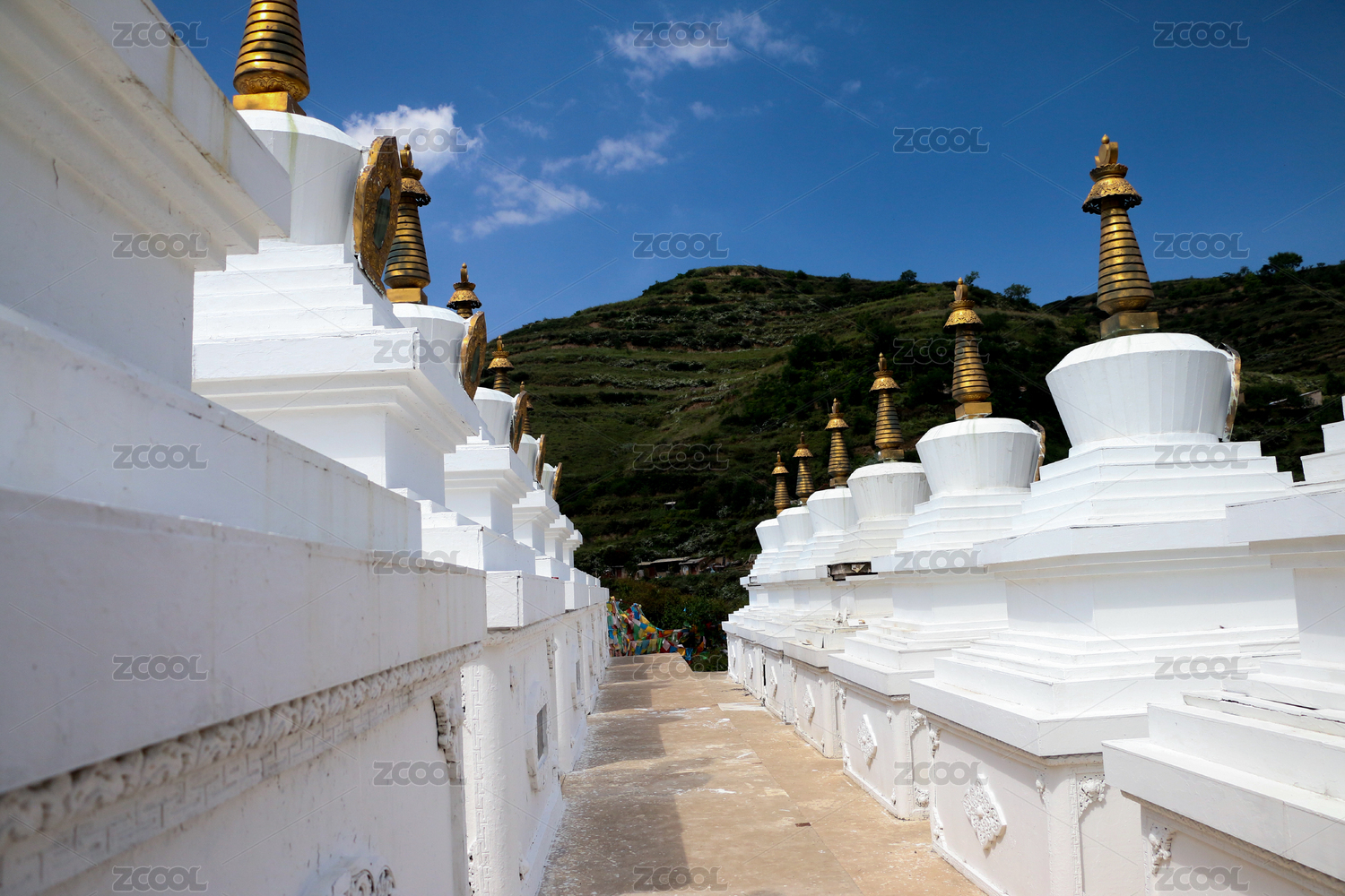 夏天青海省青海湖二郞剑风景区里的藏族风格佛塔
