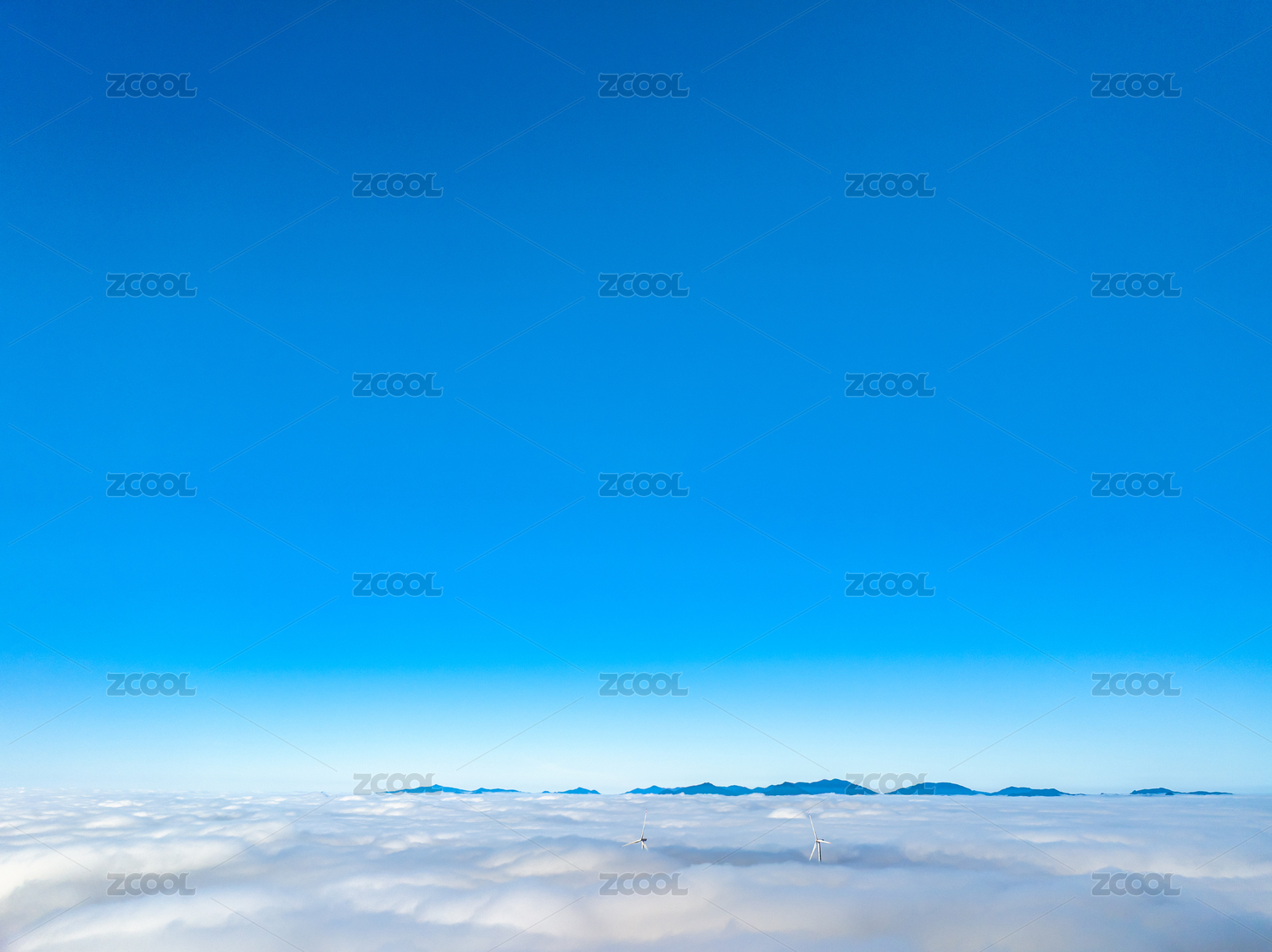蓝天白云下的山峰和云海,中国四川省峨眉山