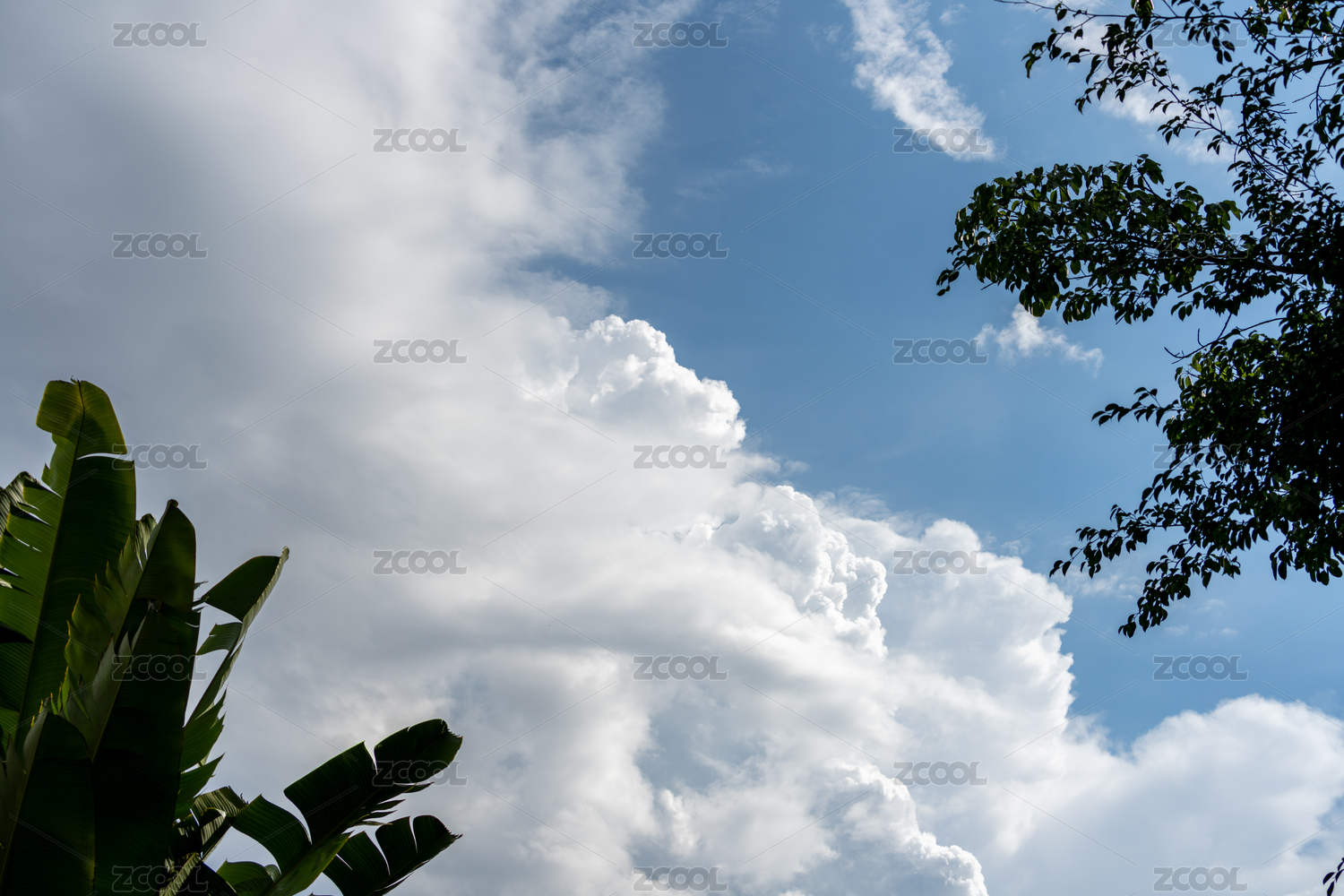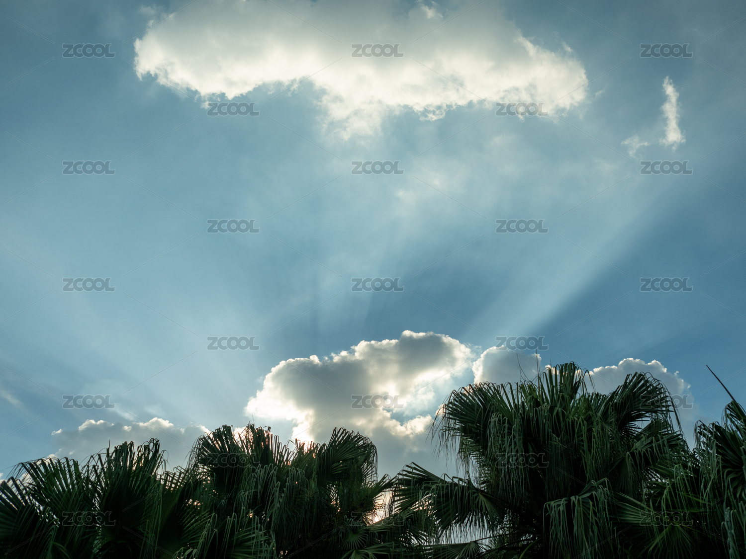 树木,树叶,蓝天,白云,天空,自然,绿色,阳光,夏天,景色