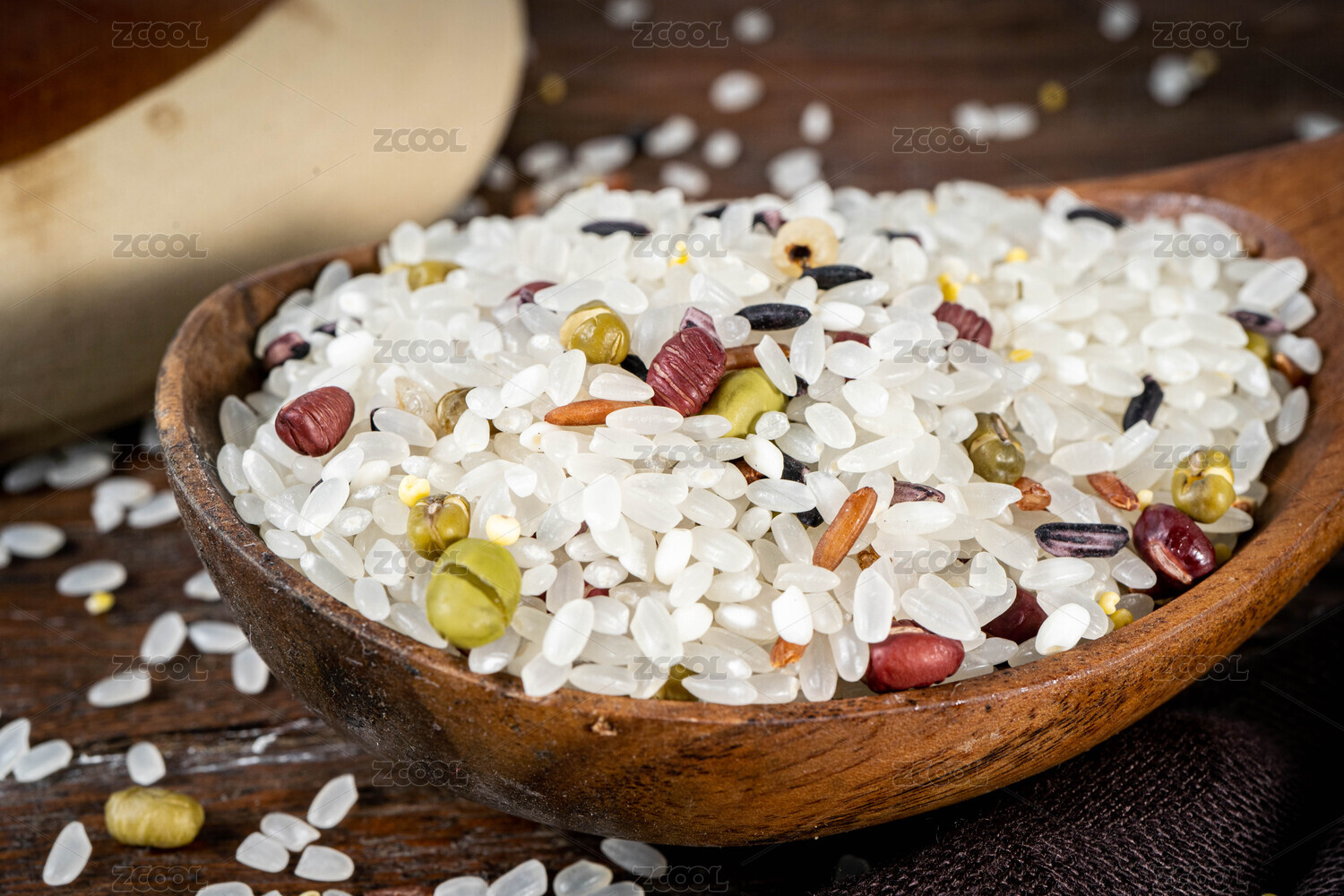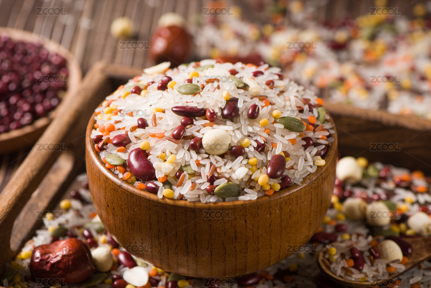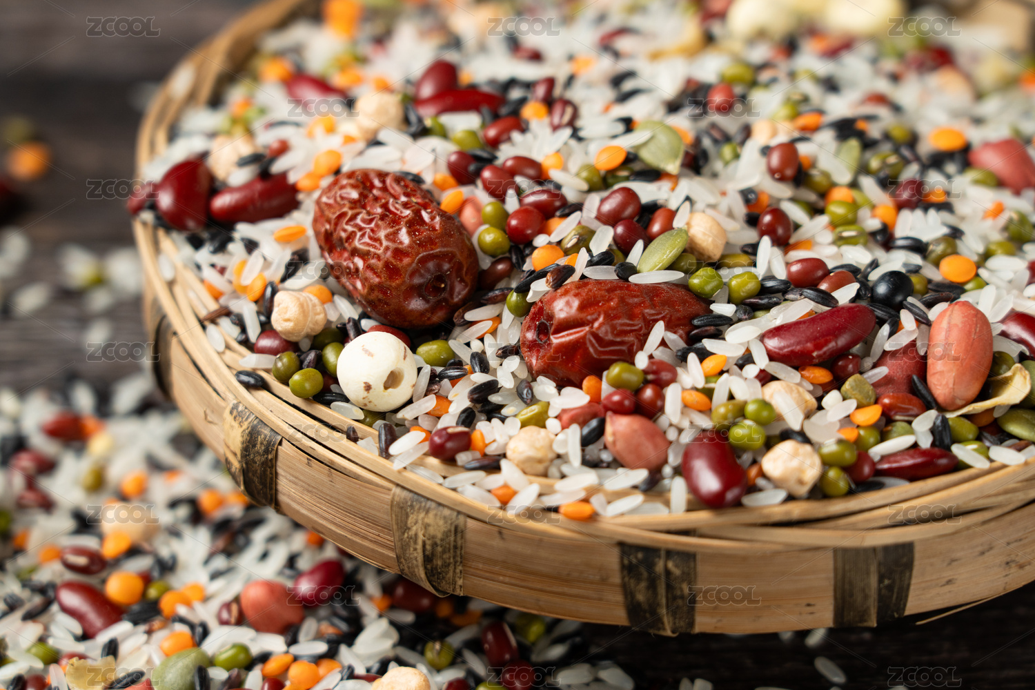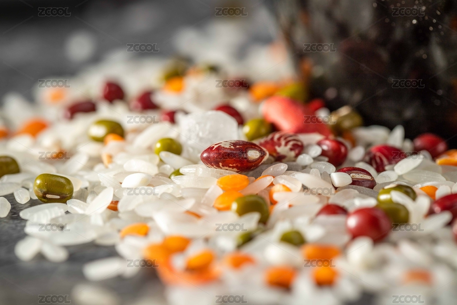 暗色调,水泥纹路,杂粮米,五谷,大米,红枣,红豆,绿豆,粥米