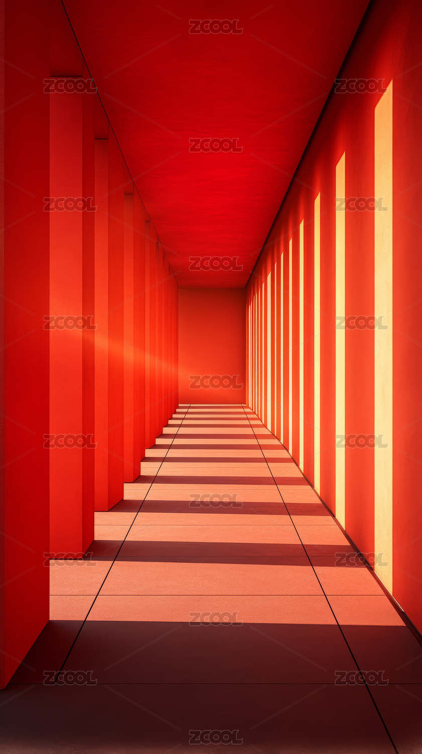 红色阶梯通道抽象空间