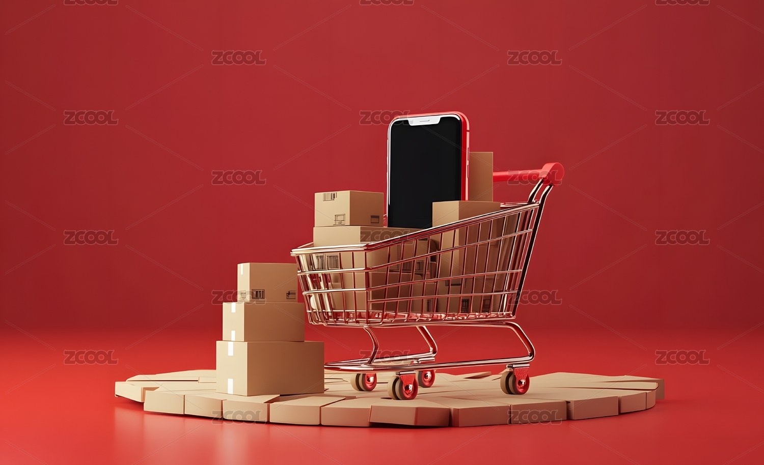 3D电商,科技,电商,海报,壁纸,背景,插画,购物,购物车,手机空白页