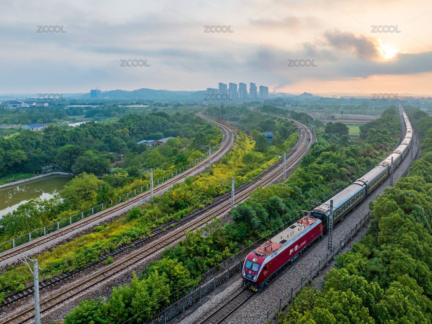 京广铁路旅客列车驶过中国湖南省衡阳市