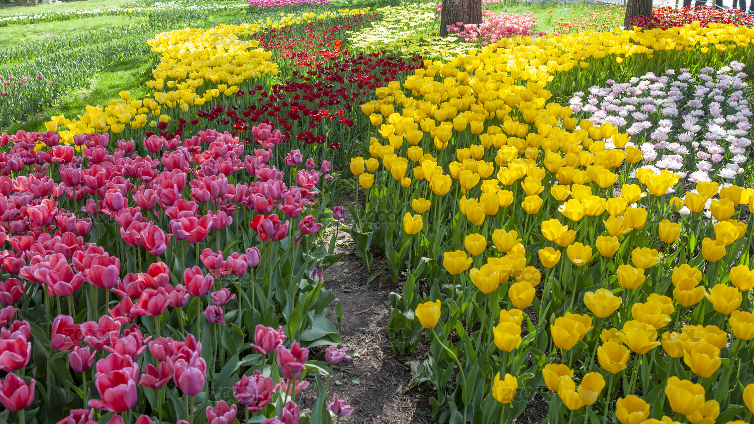 春天里的郁金香花海灿烂盛开五颜六色植物美