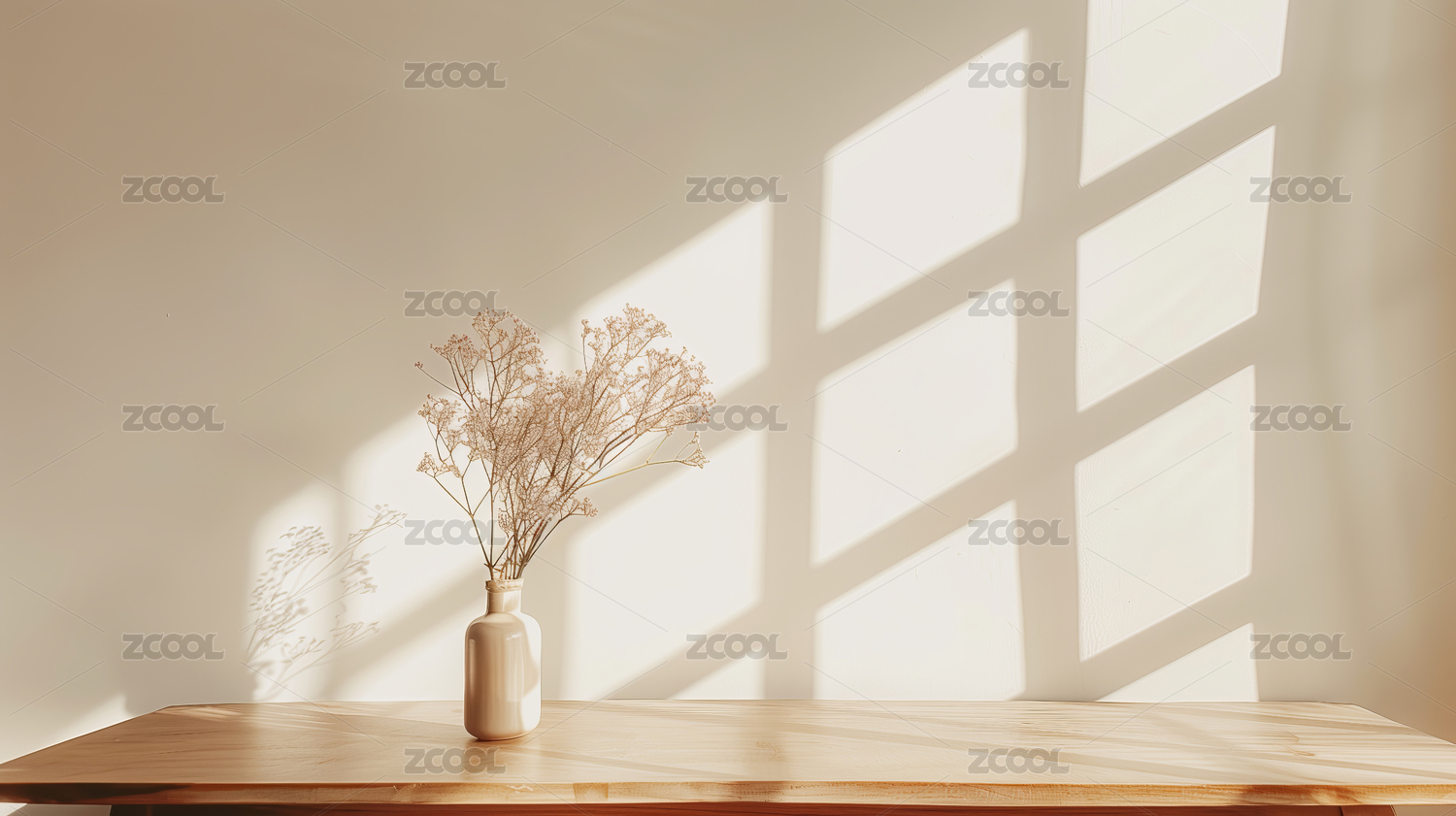 室内装饰,简约风格,树枝插花,光影效果,白色调,宁静氛围