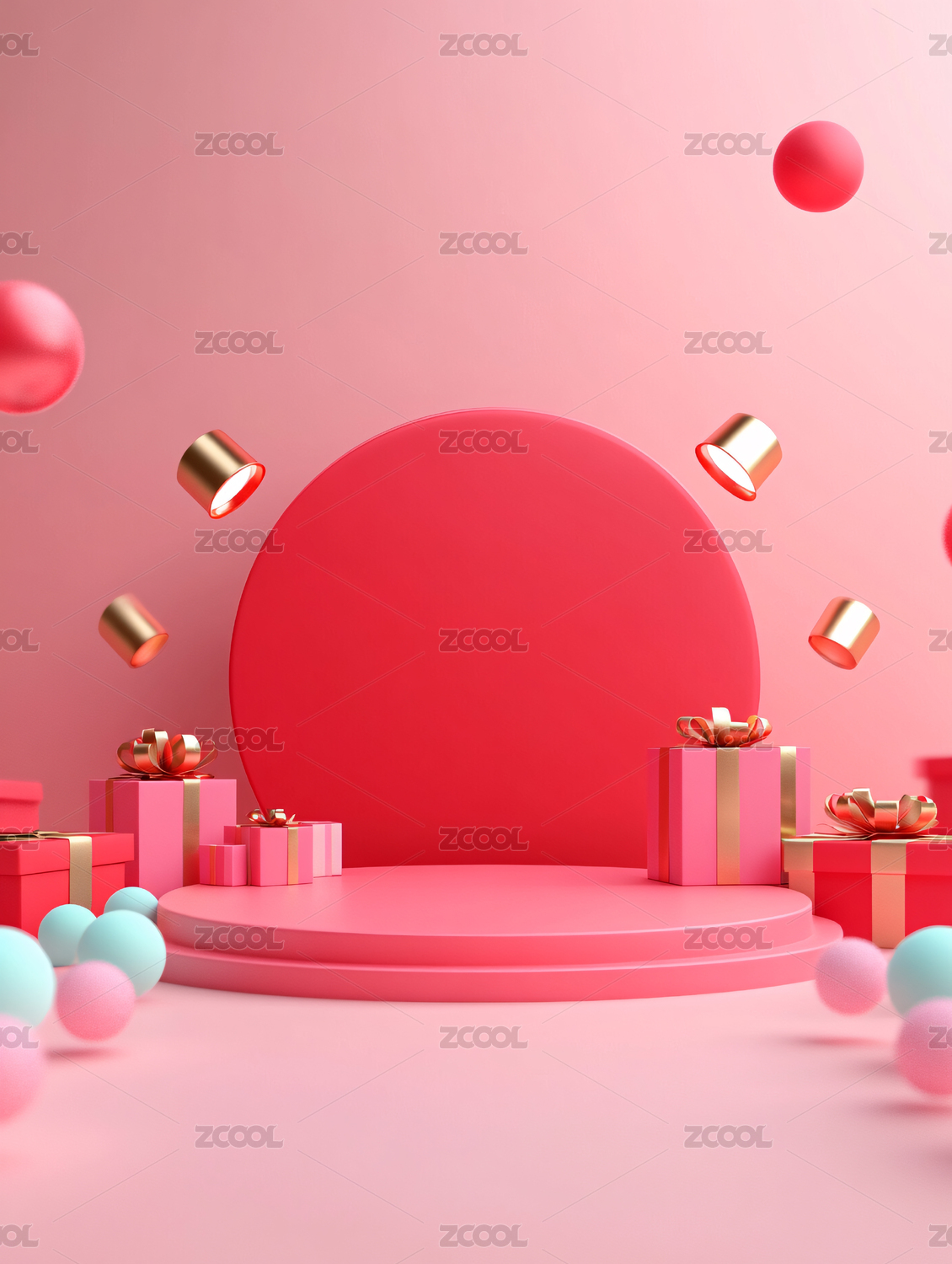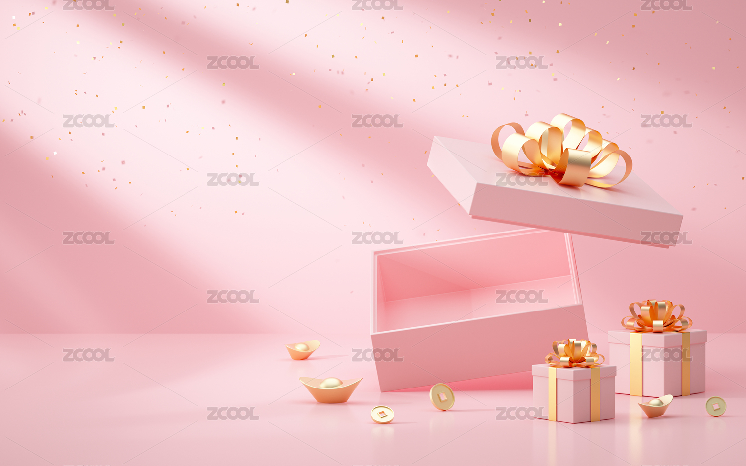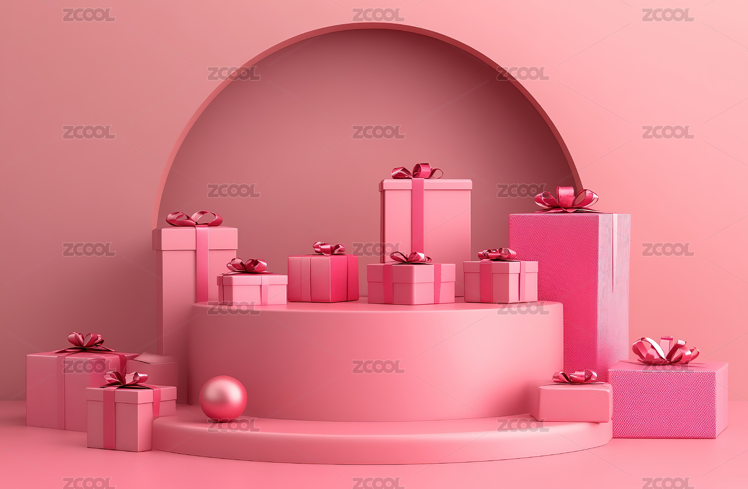 情人节粉色背景中的礼盒元素堆头图3D场景