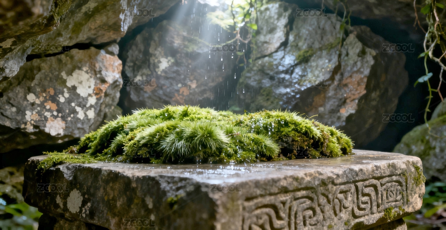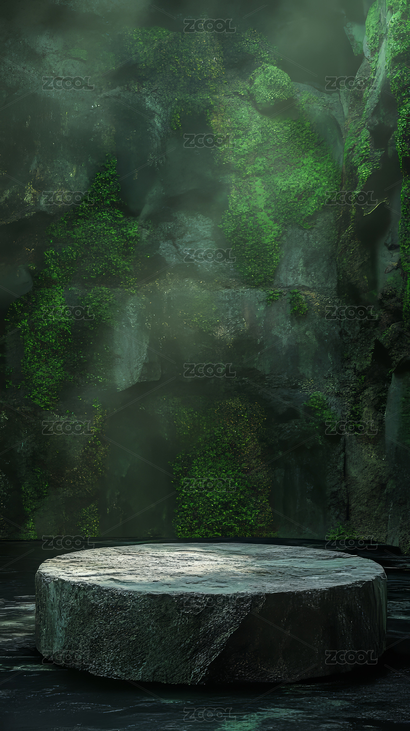 简约,极简,电商,展示,3D,青色,植物,青苔,苔藓,洞穴