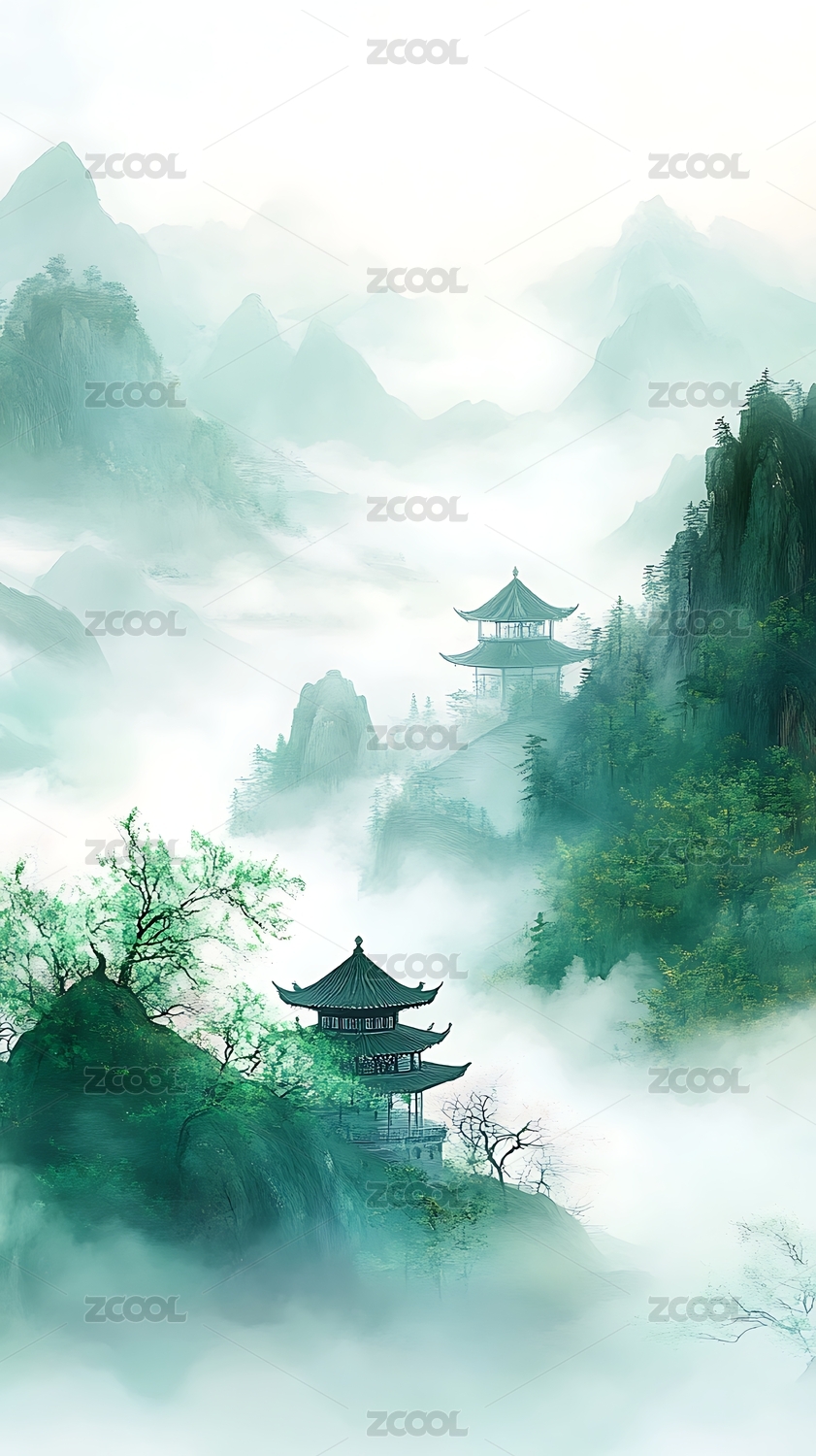 水墨山水亭台楼阁