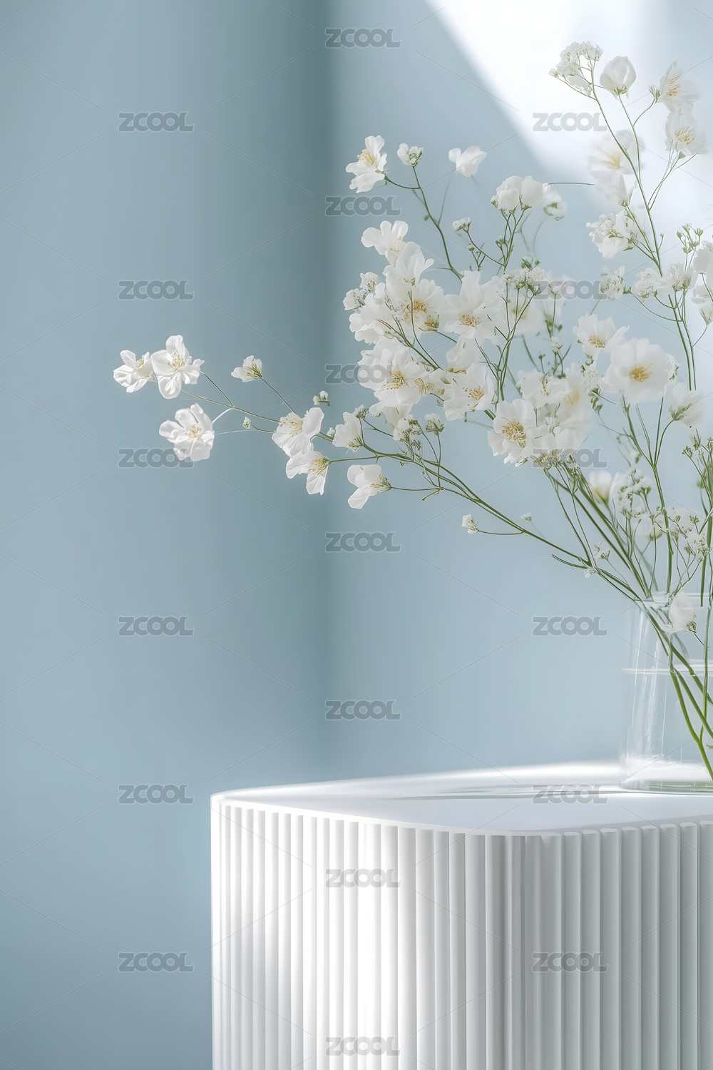 自然,蓝色,空间,叶子,阳光,背景,花朵,植物,简约,展台