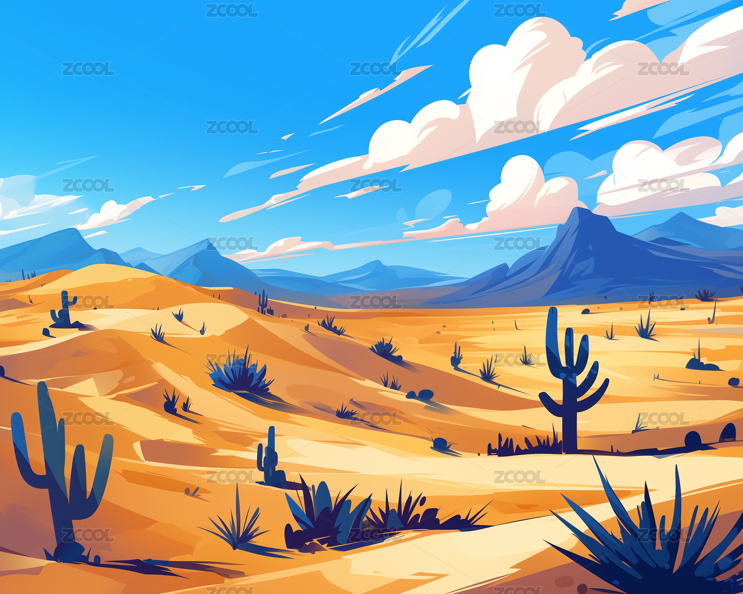 沙漠荒漠大山枯草蓝天白云仙人掌