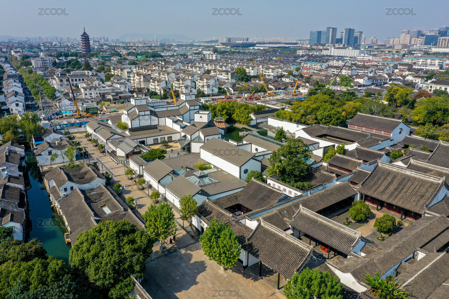 航拍中国江苏苏州博物馆及太平天国忠王府