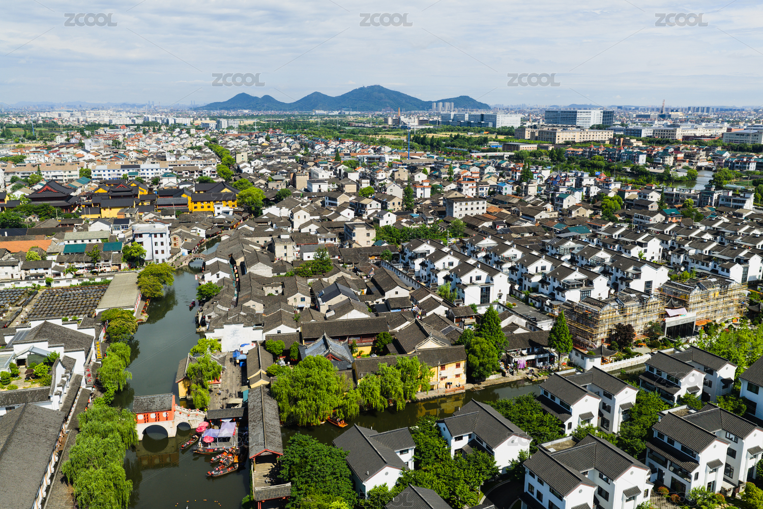 航拍中国江苏苏州斜塘老街十里斜塘河江南水乡风光
