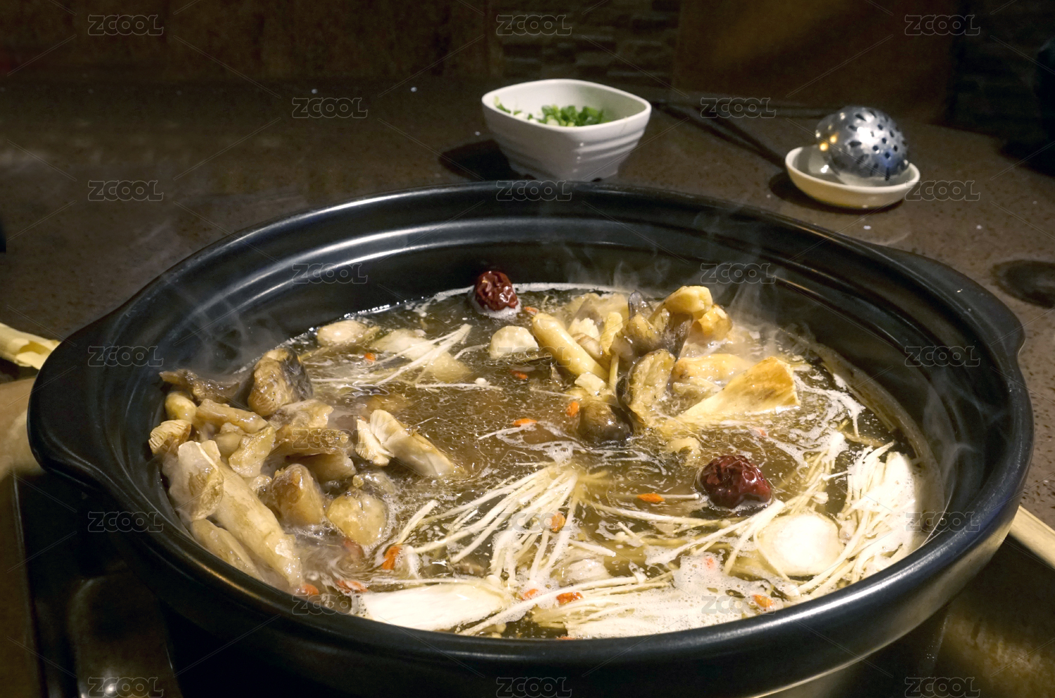 黑色砂锅里的党参红枣枸杞排骨药膳汤锅汤底