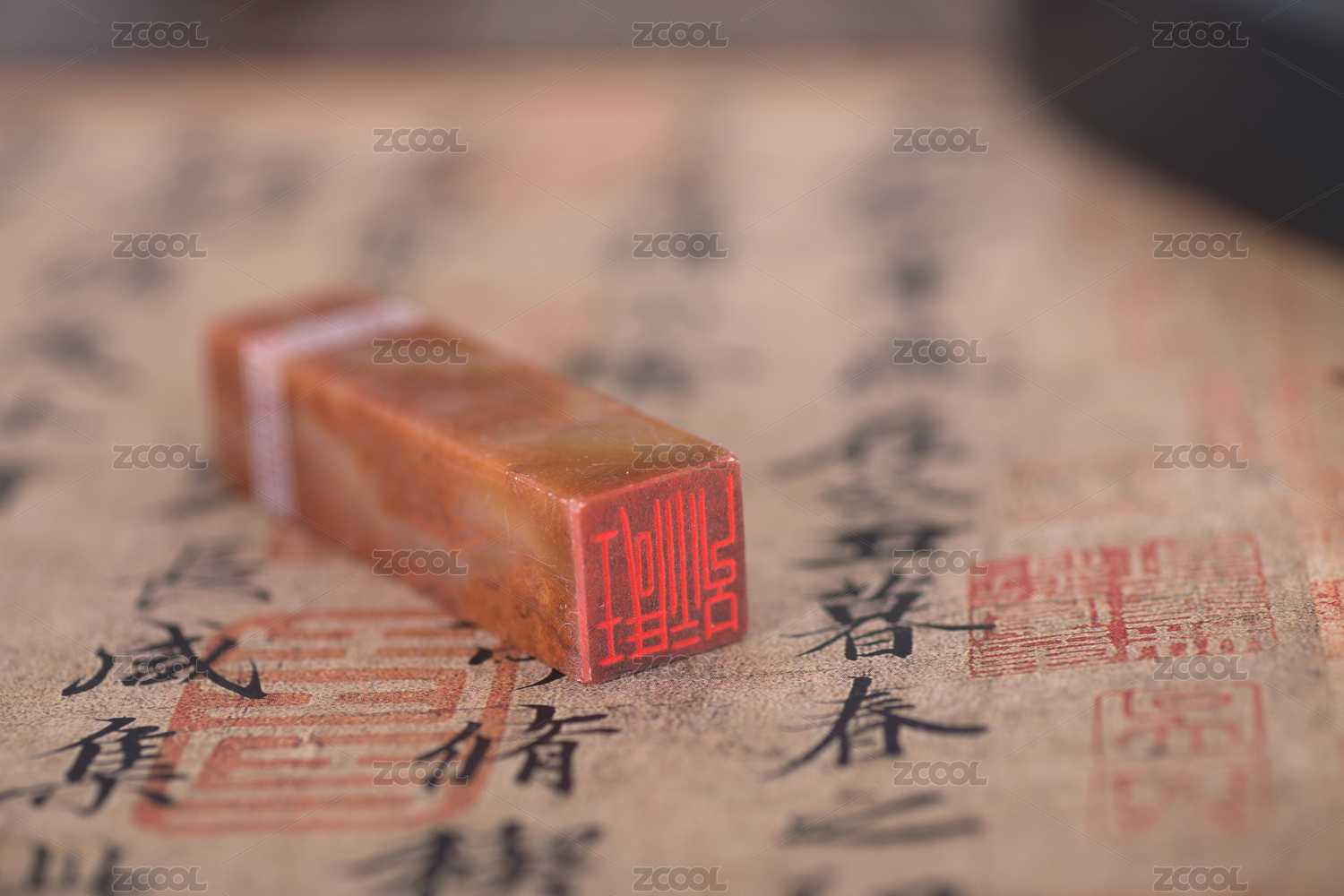 中国传统书法作品和石头印章